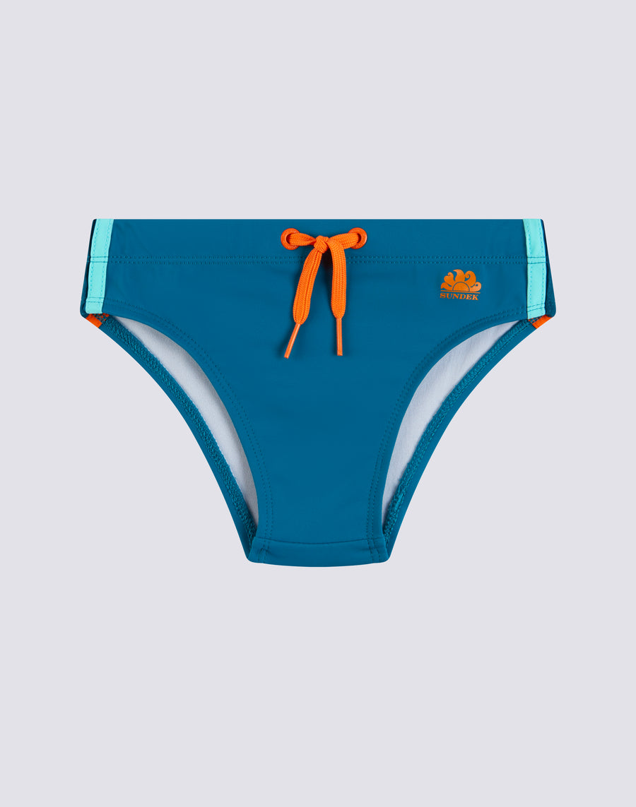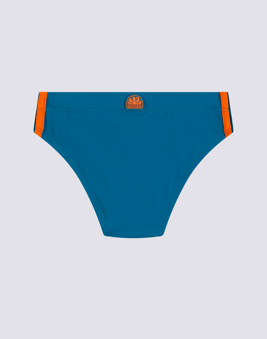 Plongez-vous dans les couleurs de l'arc-en-ciel. Slip de maillot de bain enfant en nylon Econyl régénéré.