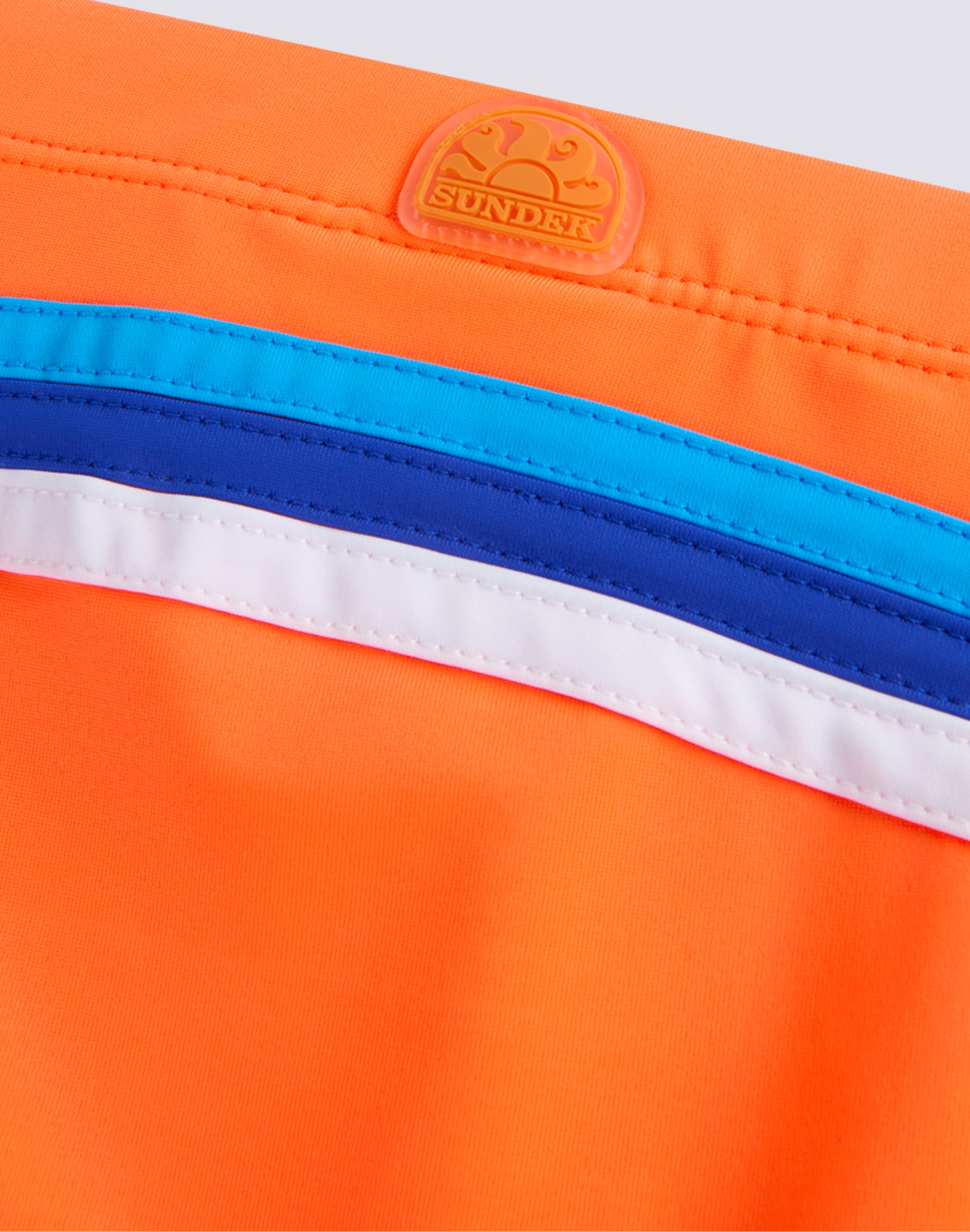 Slip de bain garçon avec détails arc-en-ciel au dos, cordon de serrage et taille élastique.