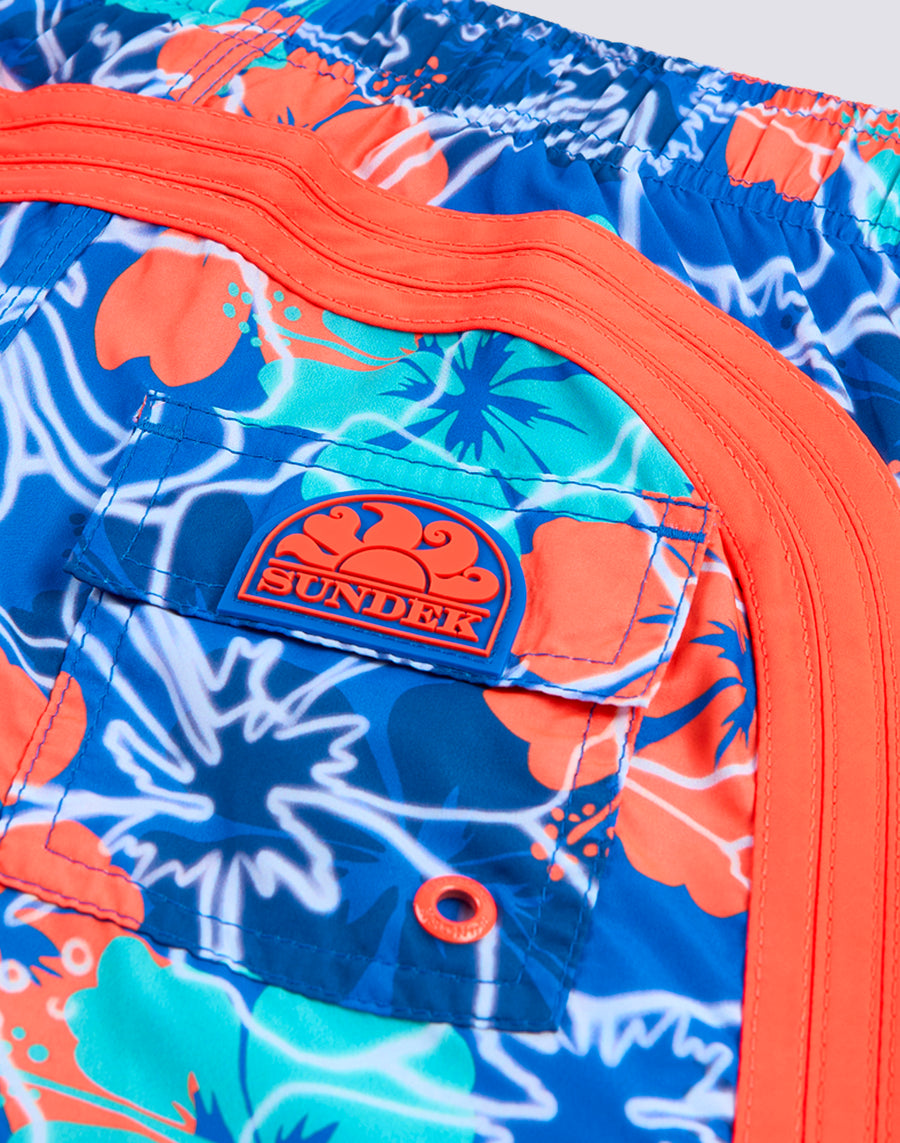 MAILLOT DE BAIN COURT REPREVE® IMPRIMÉ FLEURS À L'INTÉRIEUR ET TAILLE ÉLASTIQUE