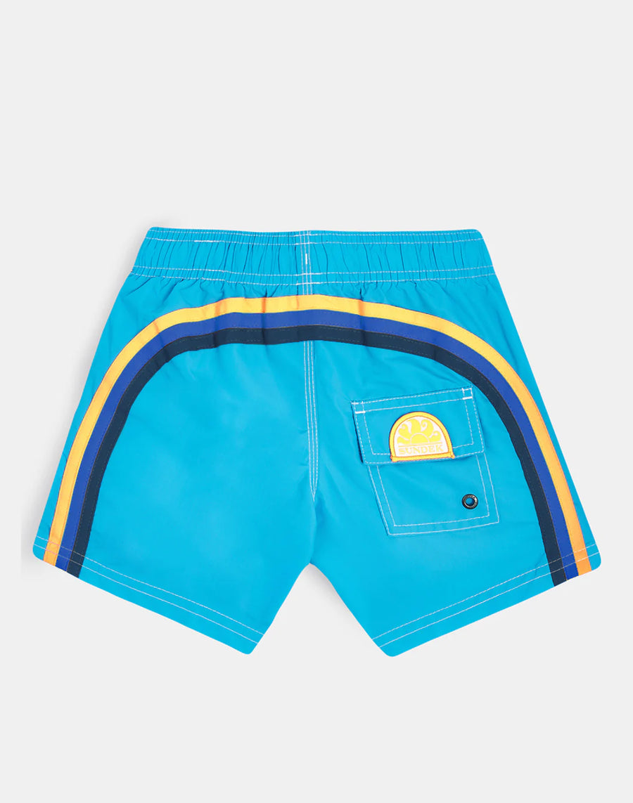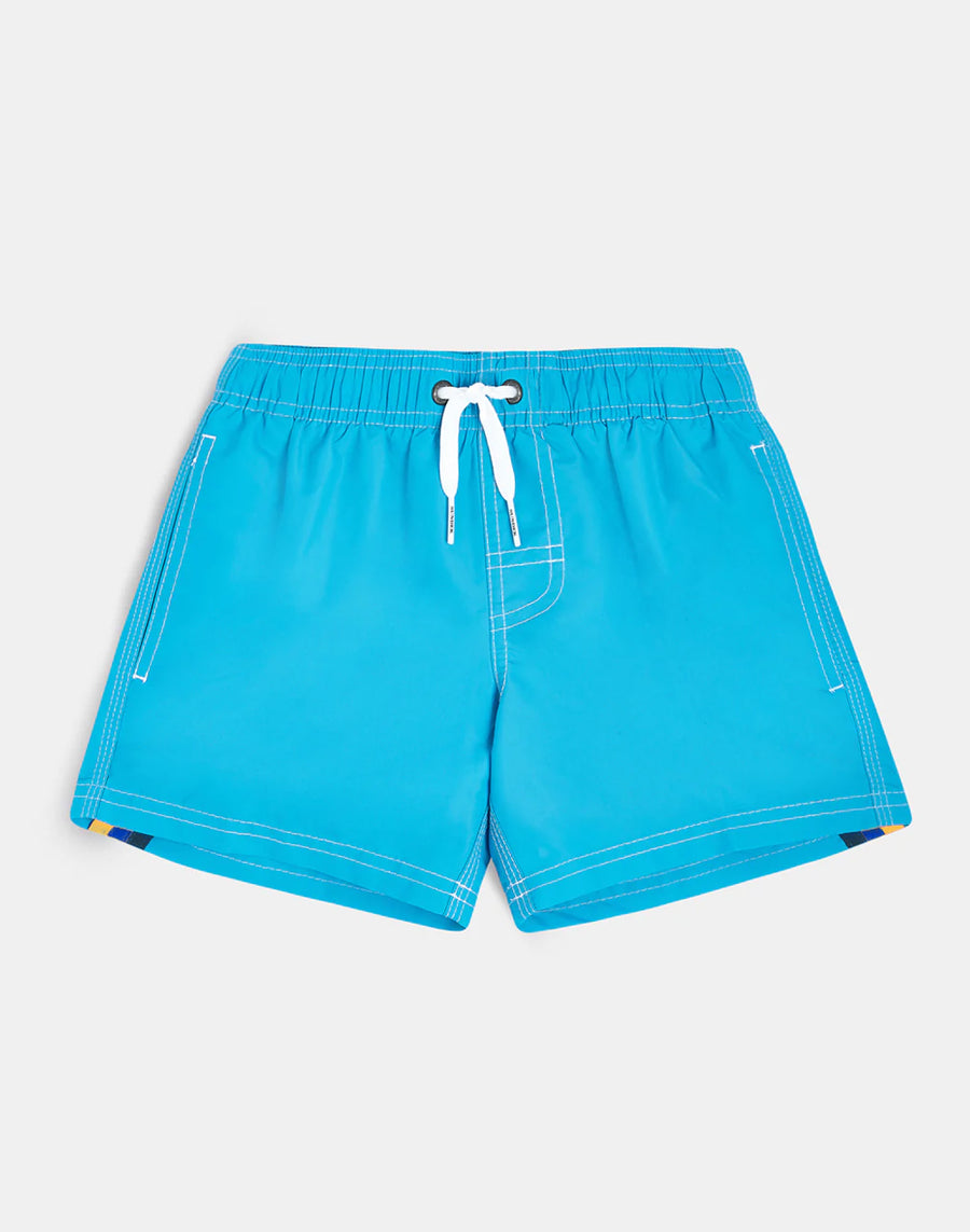 Couleur intense et tissu ultra-confortable à séchage rapide pour ce short de bain pour garçon. Un modèle qui accompagnera votre enfant dans toutes ses activités pendant les vacances, parfait pour bouger et jouer en toute liberté. Il est réalisé dans notre tissu historique en nylon taffetas et confectionné avec des coutures à trois aiguilles qui le rendent résistant dans le temps. À glisser dans la valise, année après année.