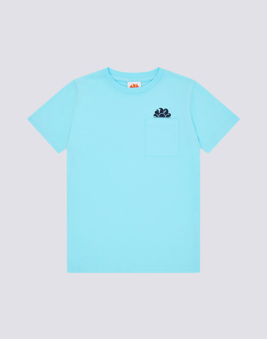 T-SHIRT ENFANT À MANCHES COURTES AVEC POCHE ET LOGO SUR LE DEVANT