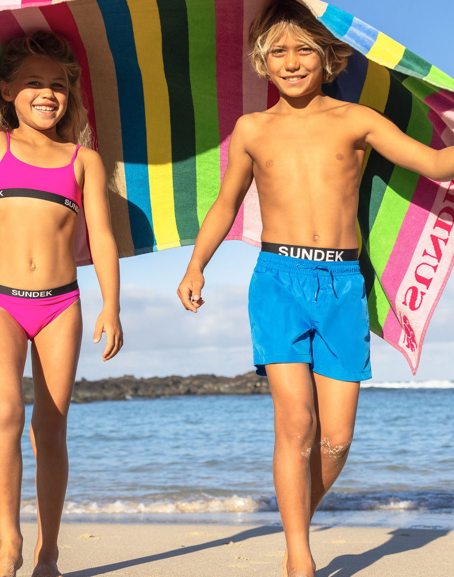 Un modèle qui accompagnera votre enfant dans ses mille activités de vacances, parfait pour bouger et jouer en toute liberté. Équipé d'un élastique avec logo de la marque, d'une poche arrière et d'un cordon de serrage pour ajuster l'ajustement. Le polyester léger avec lequel il est fabriqué apporte fraîcheur et séchage rapide.