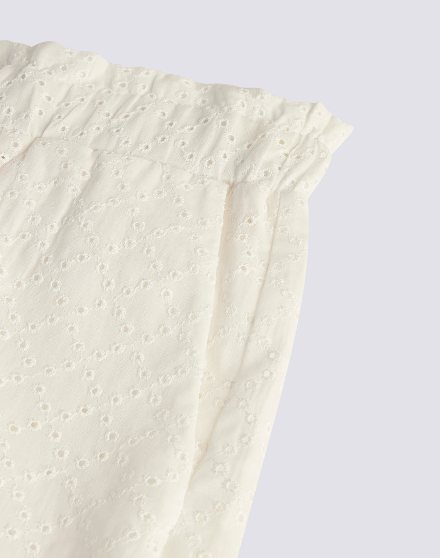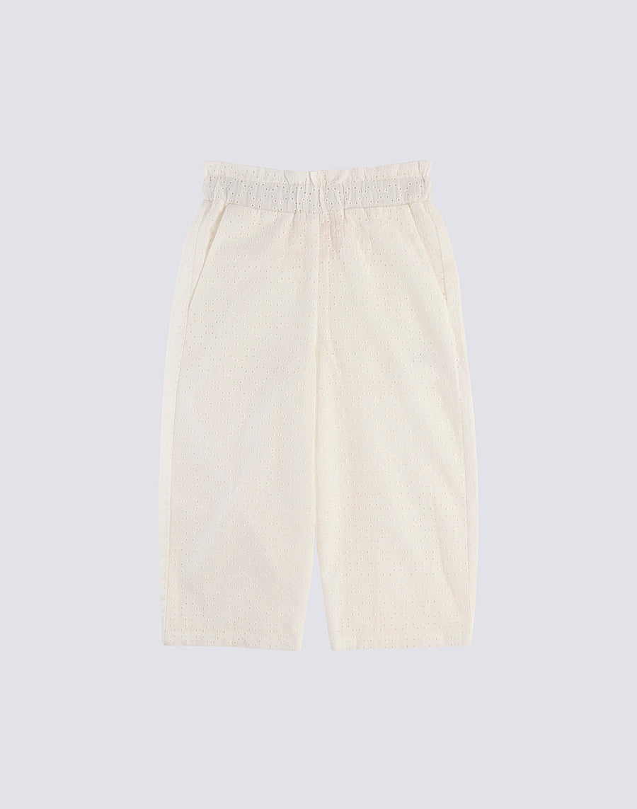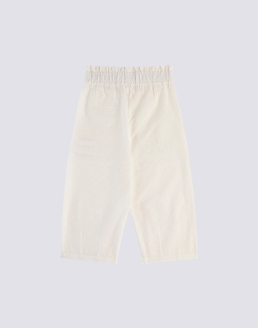 Pantalon raffiné pour fille en coton sangallo avec taille élastiquée. Pour des occasions élégantes, idéal avec un chemisier ou un t-shirt.