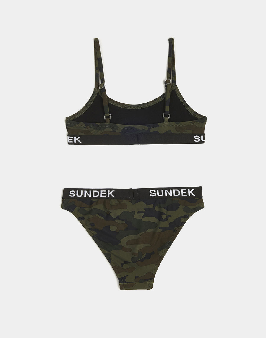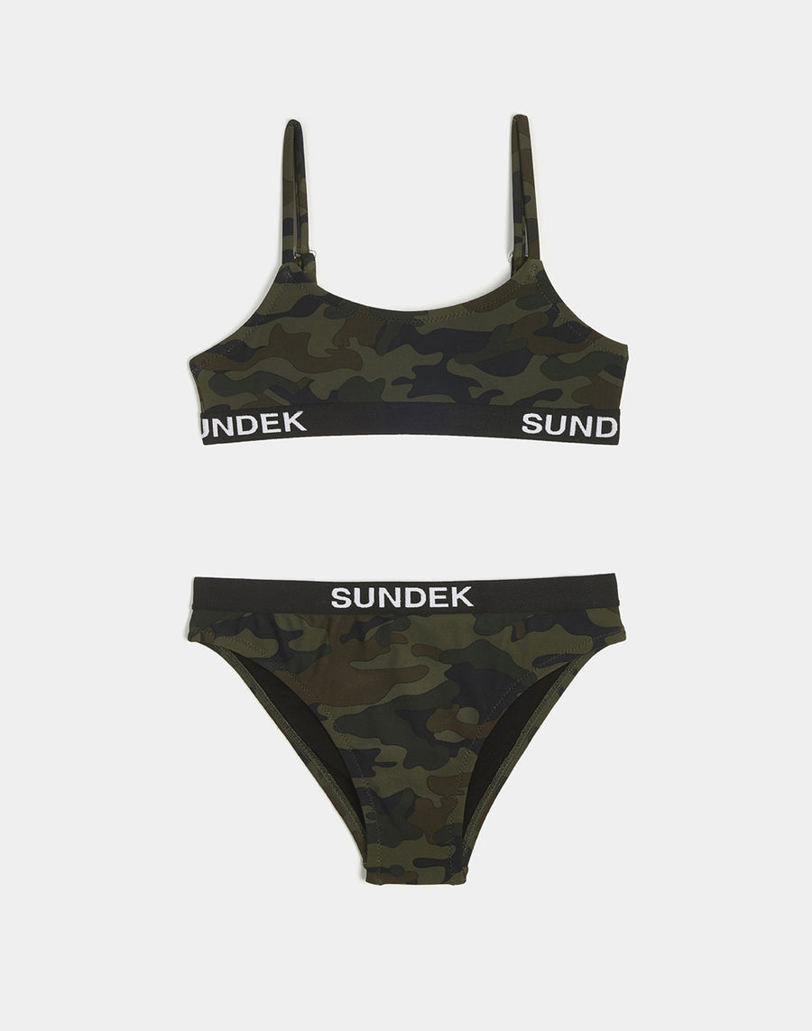 Pour ta petite fille, opte pour ce bikini composé d'un haut en bandeau et d'un slip avec élastique, les deux pièces sont personnalisées par le logo contrasté. Un look plus déterminé avec l'imprimé camouflage, la combinaison est parfaite avec la robe coord