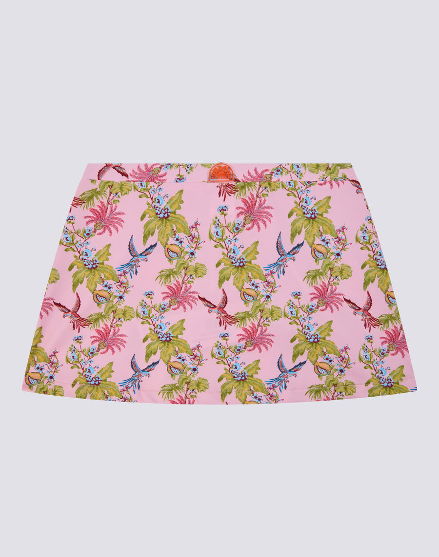 Mini jupe pareo pour fille avec imprimé Sweet Parrot, taille élastique et fente sur le devant.
