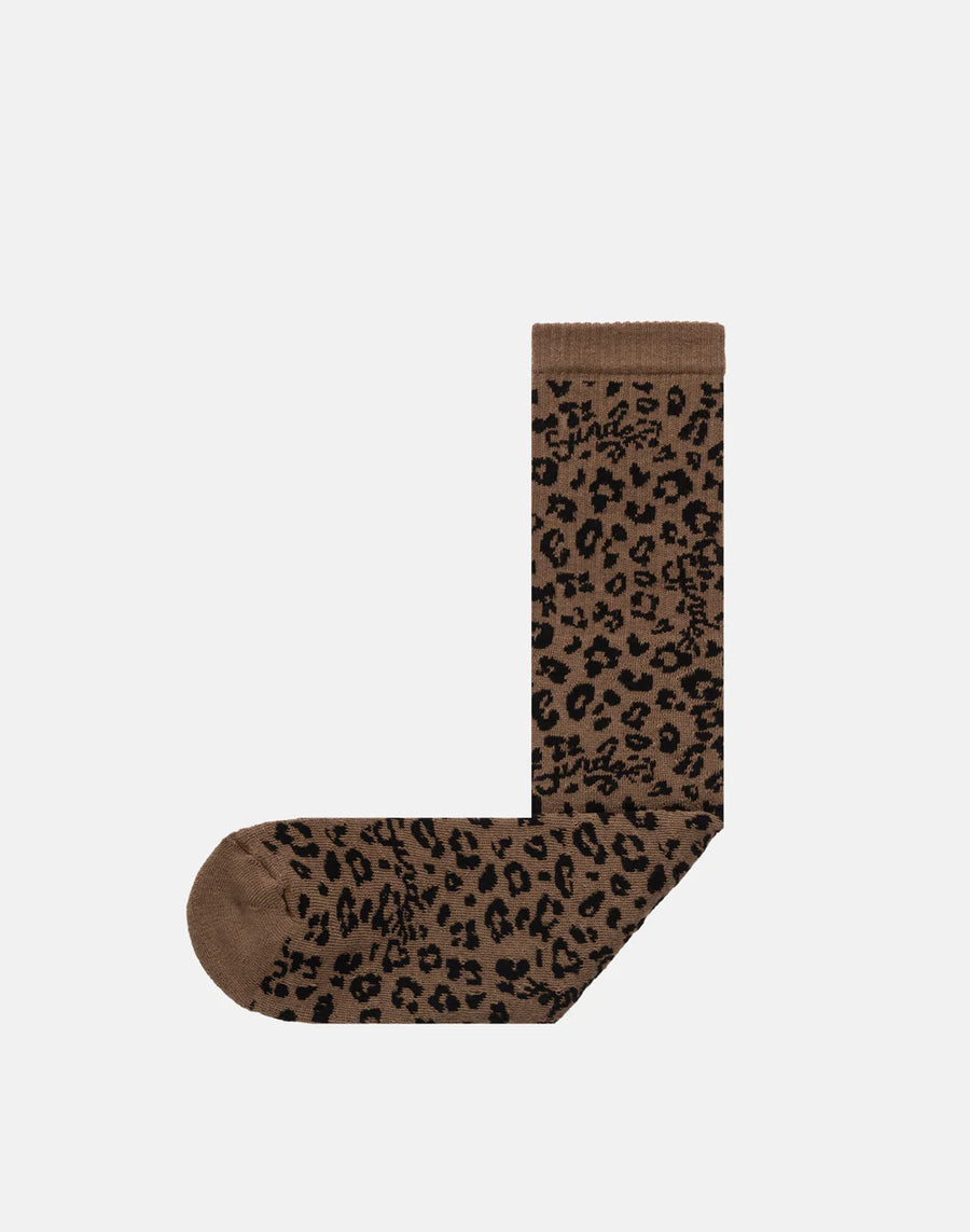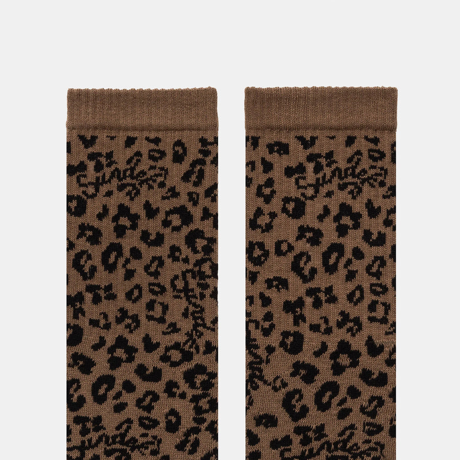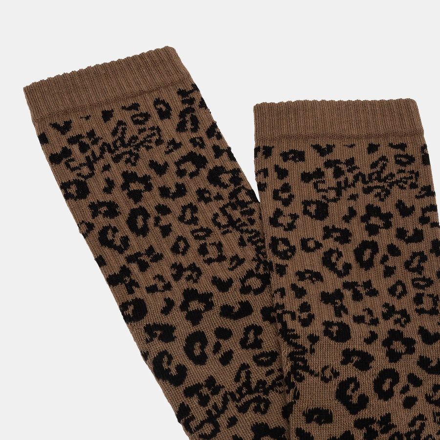 Chaussettes jacquard en coton doux avec tige côtelée et imprimé léopard