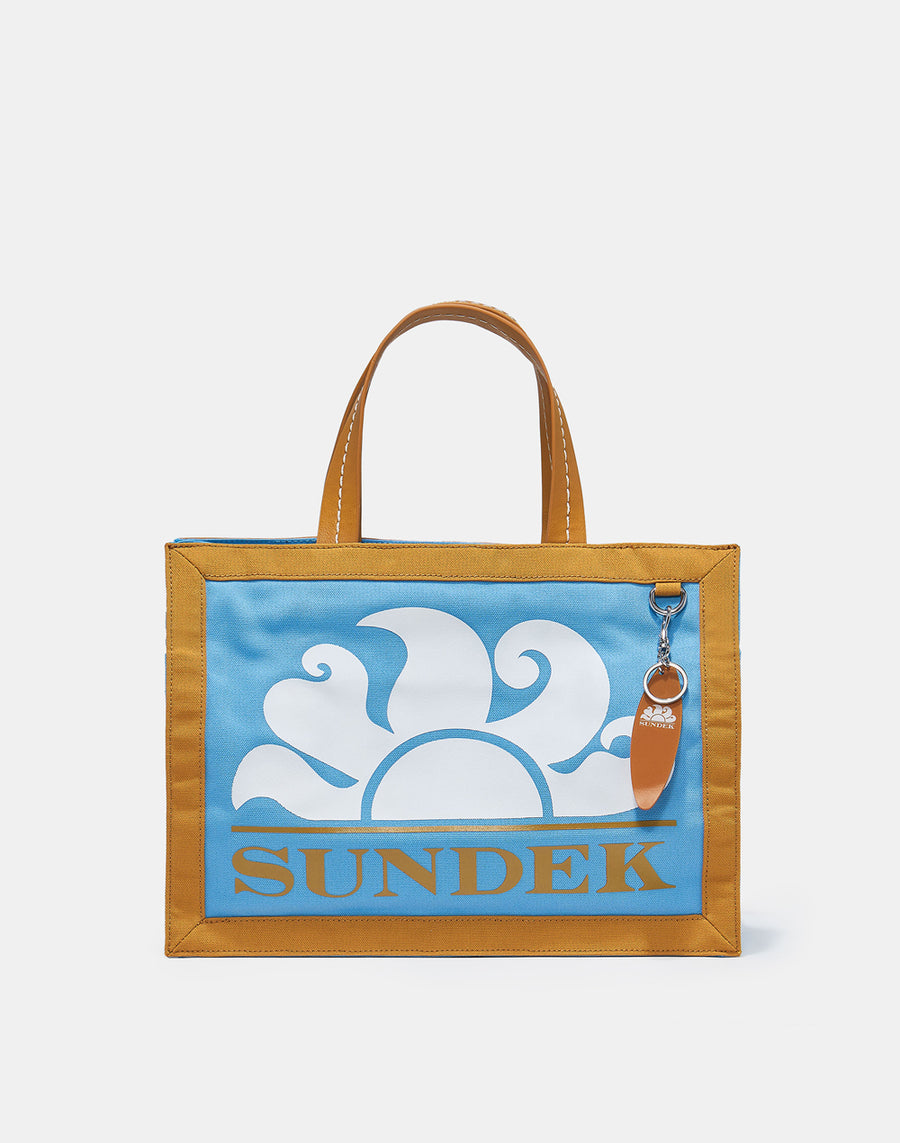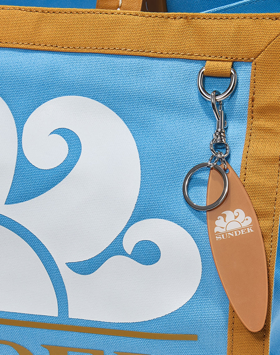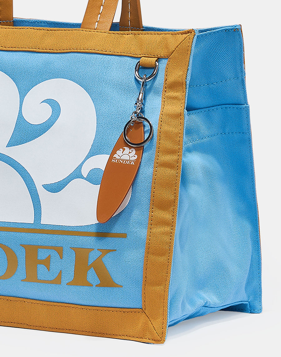 Sac à main moyen en toile avec logo Sundek imprimé. Charm avec la forme caractéristique d'une planche de surf