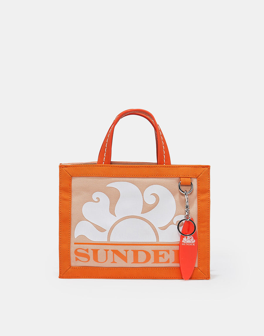 Petit sac à porter à la main ou en bandoulière. En toile avec logo imprimé et bandoulière amovible. Charm avec la forme caractéristique d'une planche de surf qui rappelle l'histoire de Sundek