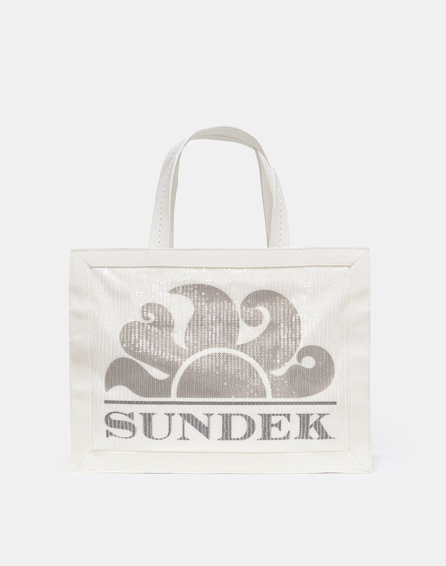 Sac en mesh de taille moyenne avec détails en sequins et logo Sundek imprimé. Ce sac est parfait pour la plage grâce à son filet à mailles fines qui empêche le passage du sable. Avec charm en forme de planche de surf.