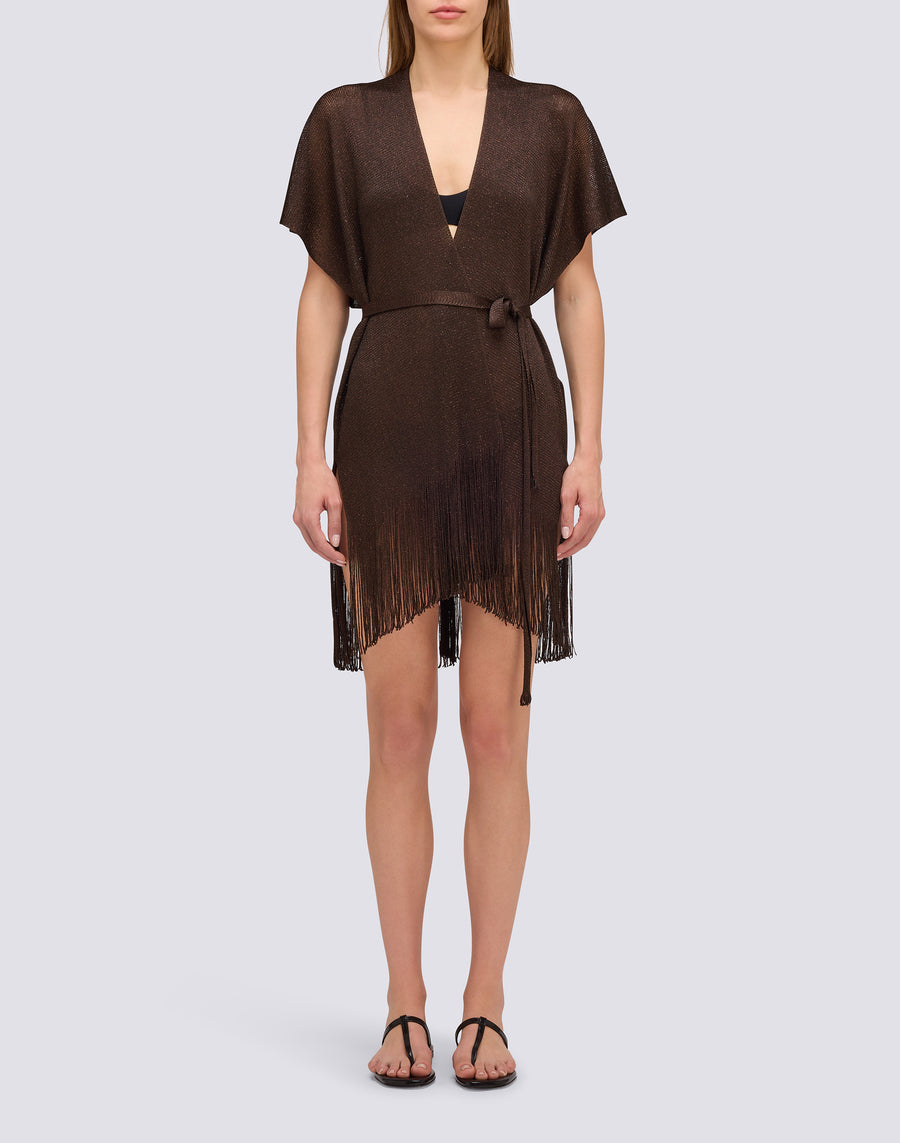 Un kaftan court en lurex à porter par-dessus votre bikini pour vous couvrir ou pour un apéritif élégant sur la plage. Vous serez étincelante et ne passerez pas inaperçue !