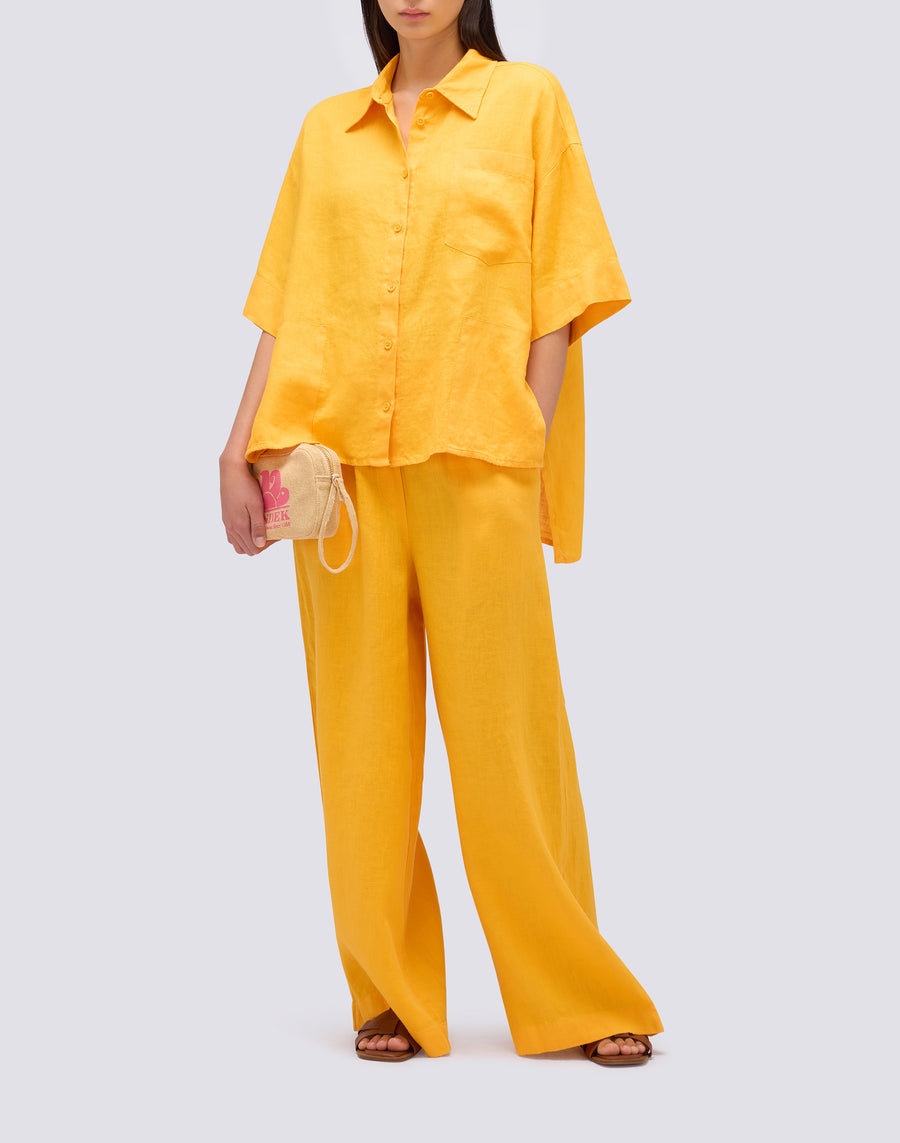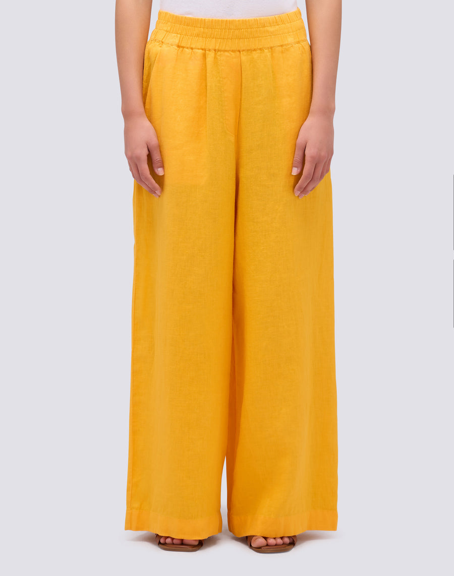 PANTALON LONG EN LIN TEINT DANS LA MASSE