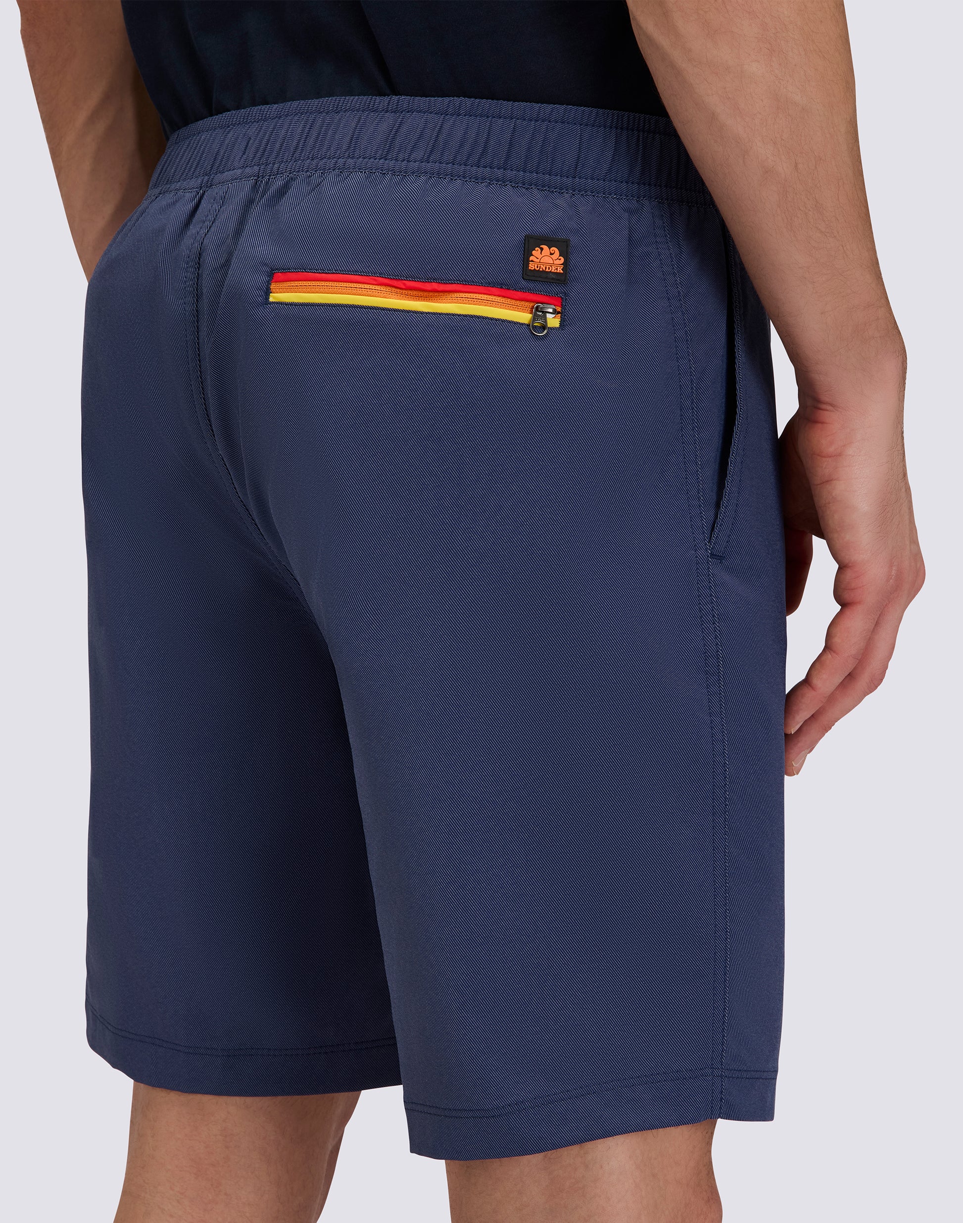 66 % POLYAMIDE 29 % POLYESTER 5 % ÉLASTHANNE – SÉCHAGE RAPIDE Tissu mélangé nylon-polyester léger, à séchage rapide, hydrofuge, extensible et ultra confortable. Grâce à ses caractéristiques techniques, il est adapté à une utilisation aussi bien dans l'eau qu'en dehors.