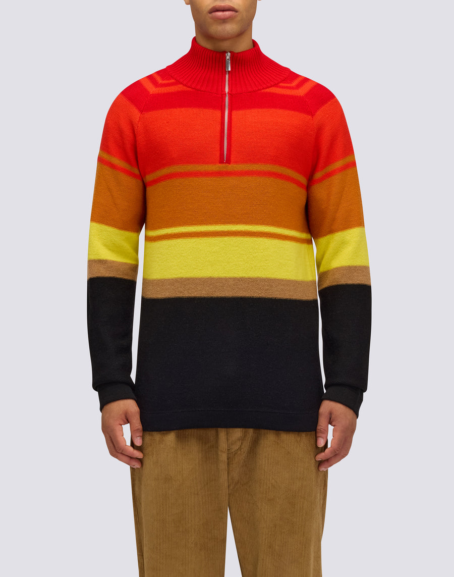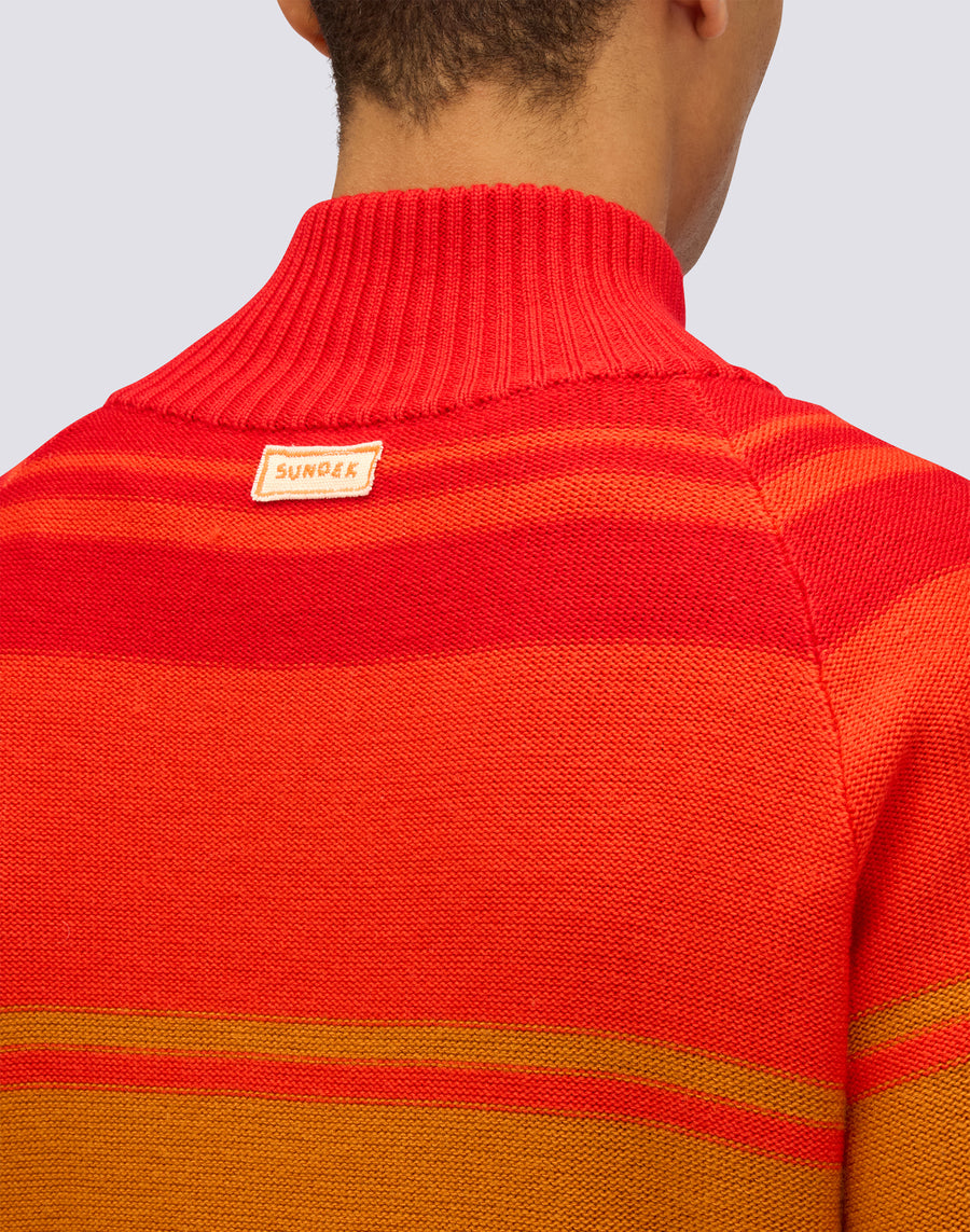 PULL HOMME À COL MONTANT AVEC FERMETURE ÉCLAIR 3/4 ET RAYURES HÉRITAGE