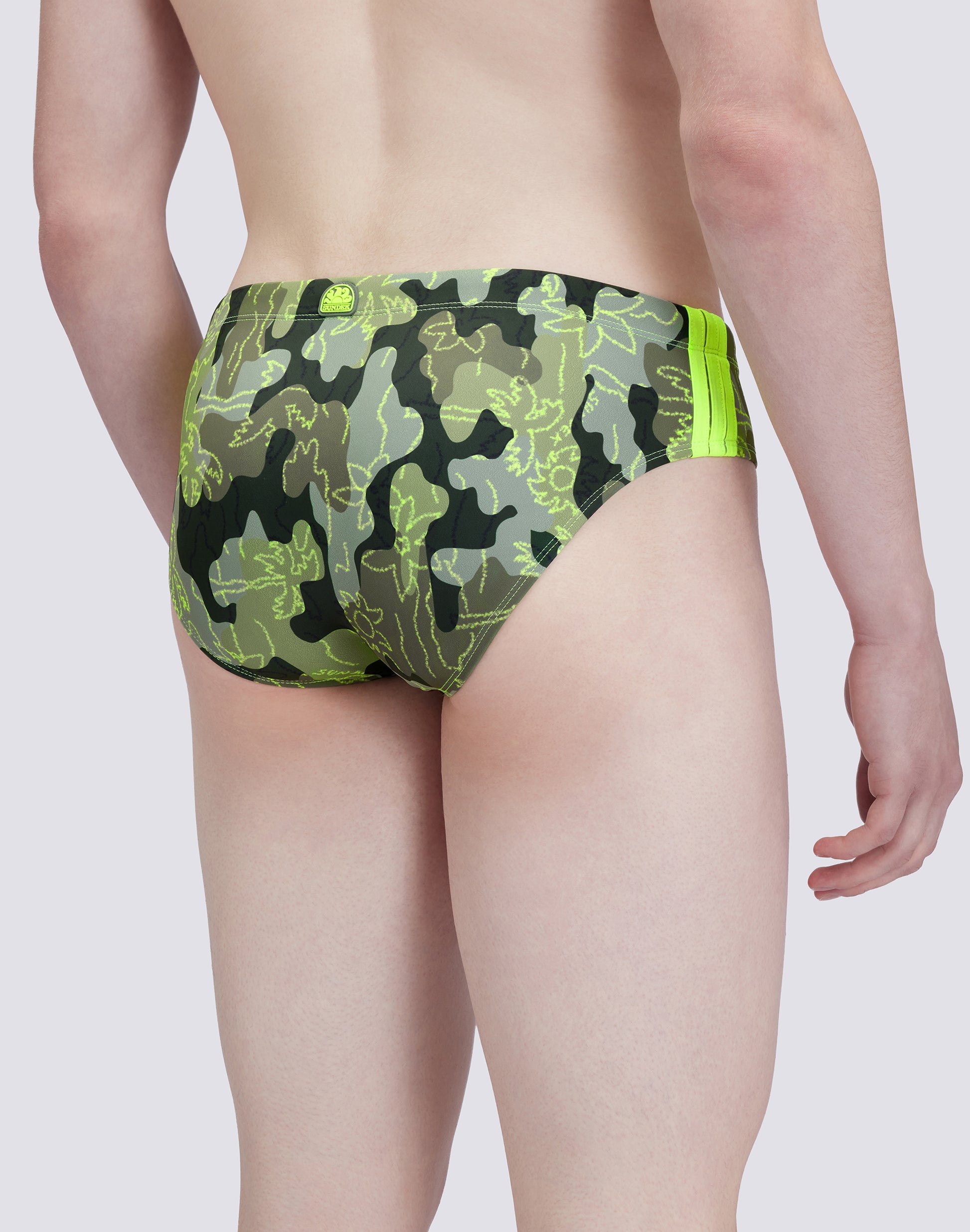Slip de bain homme avec taille ajustable et cordon de serrage contrasté : un modèle intemporel mais avec un twist donné par le motif camouflage. Vous pouvez le porter aussi bien pour la natation que pour les bains de soleil et le bronzage.