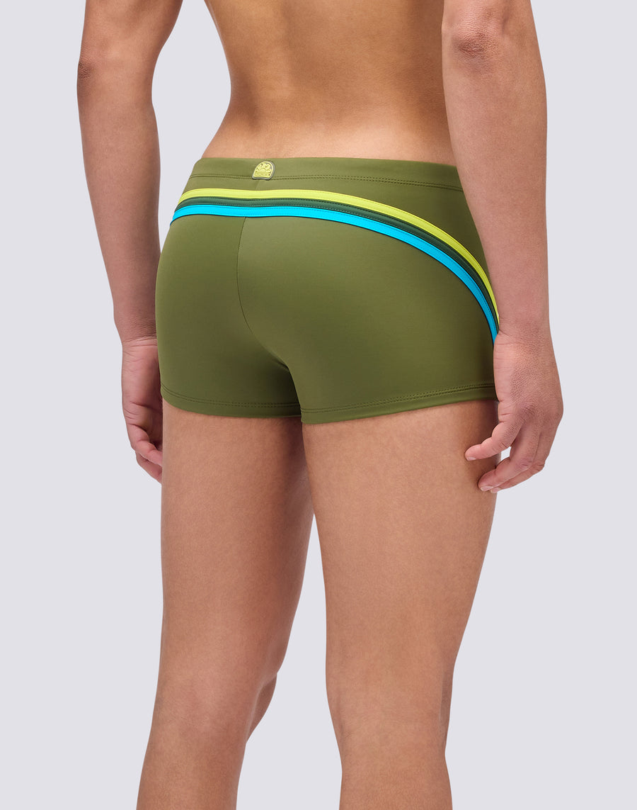 Boxer de bain pour homme à taille ajustable avec cordon de serrage et cordon de serrage contrasté : c'est un modèle intemporel en phase avec son temps car il est éco-durable grâce au tissu régénéré ECONYL® Made in Italy. Vous pouvez le porter aussi bien pour nager que pour bronzer et bronzer. Longueur de jambe extérieure 9"/23cm (en taille M).