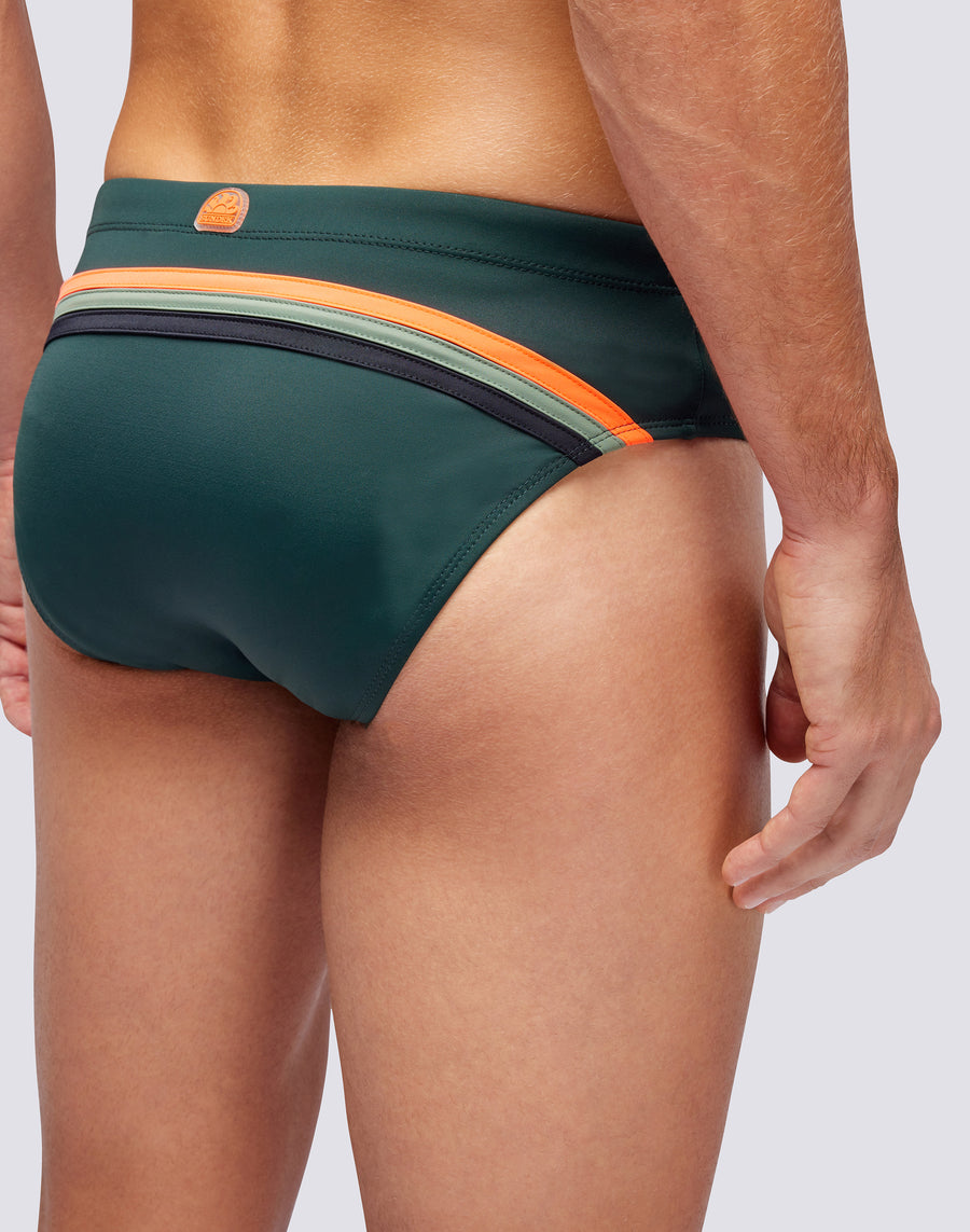 Ajoutez une touche de couleur à vos journées à la plage avec notre slip de bain homme orné de l'iconique arc-en-ciel Sundek. Il offre un confort lors de la baignade et du bain aussi bien en mer qu'en piscine.