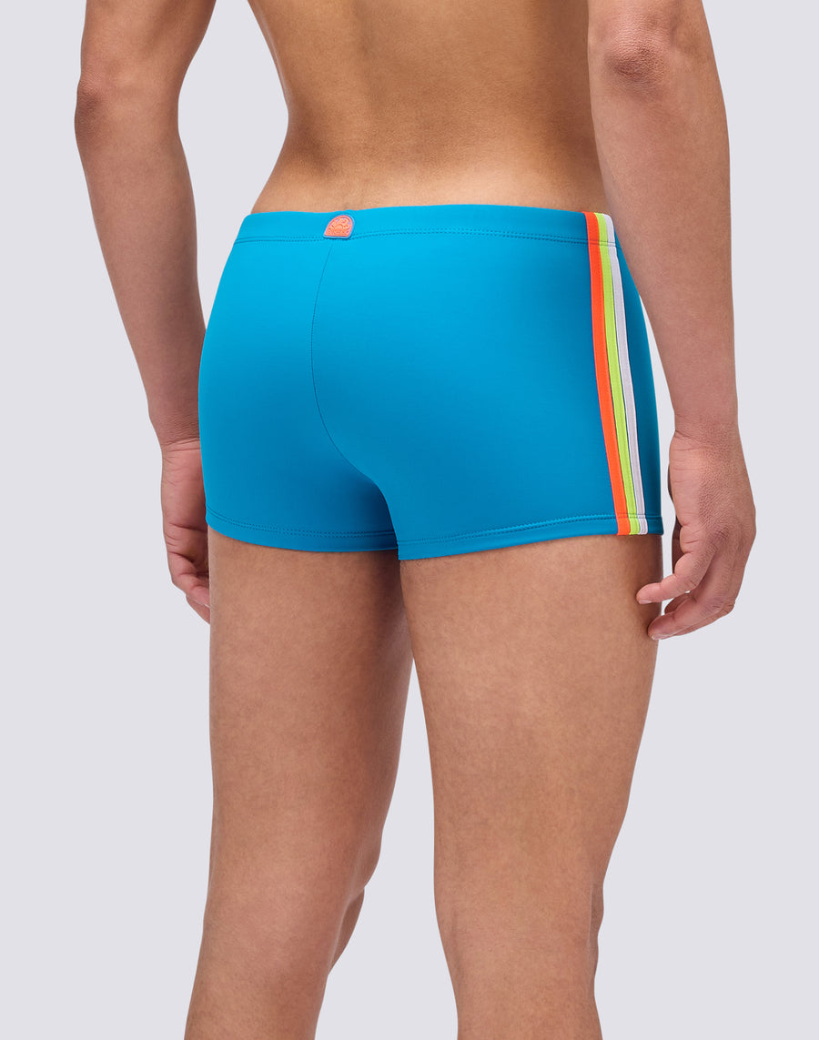 Boxer de bain pour homme à taille ajustable avec cordon de serrage et cordon de serrage contrasté : c'est un modèle intemporel en phase avec son temps car il est éco-durable grâce au tissu régénéré ECONYL® Made in Italy. Vous pouvez le porter aussi bien pour nager que pour bronzer et bronzer. Longueur de jambe extérieure 9"/23cm (en taille M).