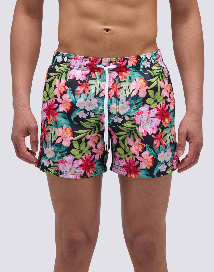 SHORT SWIMSUIT WITH ELASTIC WAIST AND BORA BORA PRINT