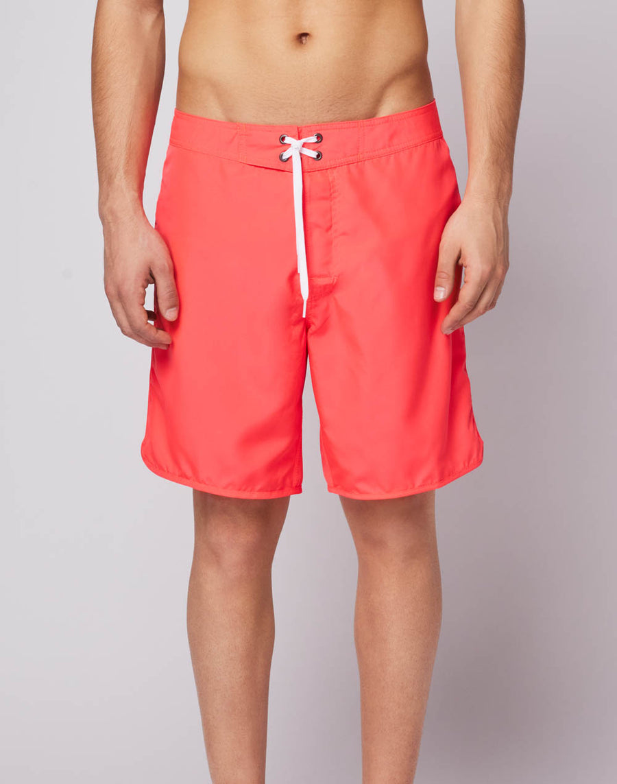Maillot de bain long pour homme avec taille fixe, cordon de serrage et arc-en-ciel emblématique de Sundek dans le dos. Ce maillot de bain est fabriqué avec trois coutures à l'aiguille sur la zone la plus sollicitée pour une résistance maximale. Le tissu choisi est un polyester léger, pour vous apporter du confort partout, dans les vagues comme hors de l'eau. Coupe taille basse. Longueur 18"/46 CM (en taille 32).