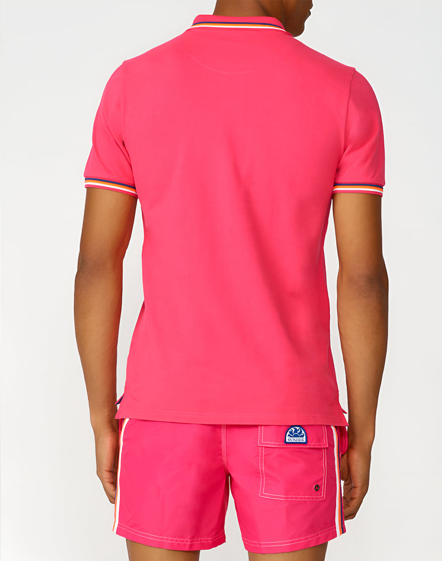 Détails iconiques et couleurs vives pour ce polo en coton piqué, parfait pour donner du caractère au look. Ce polo pour homme avec col et bas de manches caractérisés par les bandes tricolores emblématiques, signature de Sundek, mise tout sur les détails.