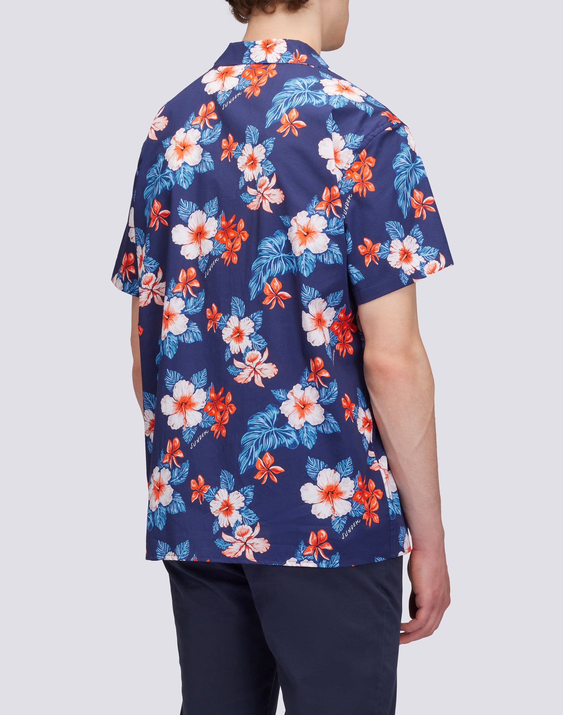 Chemise en style bowling imprimée à manches courtes, en coton.