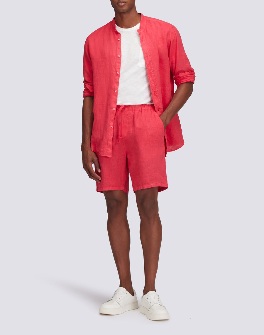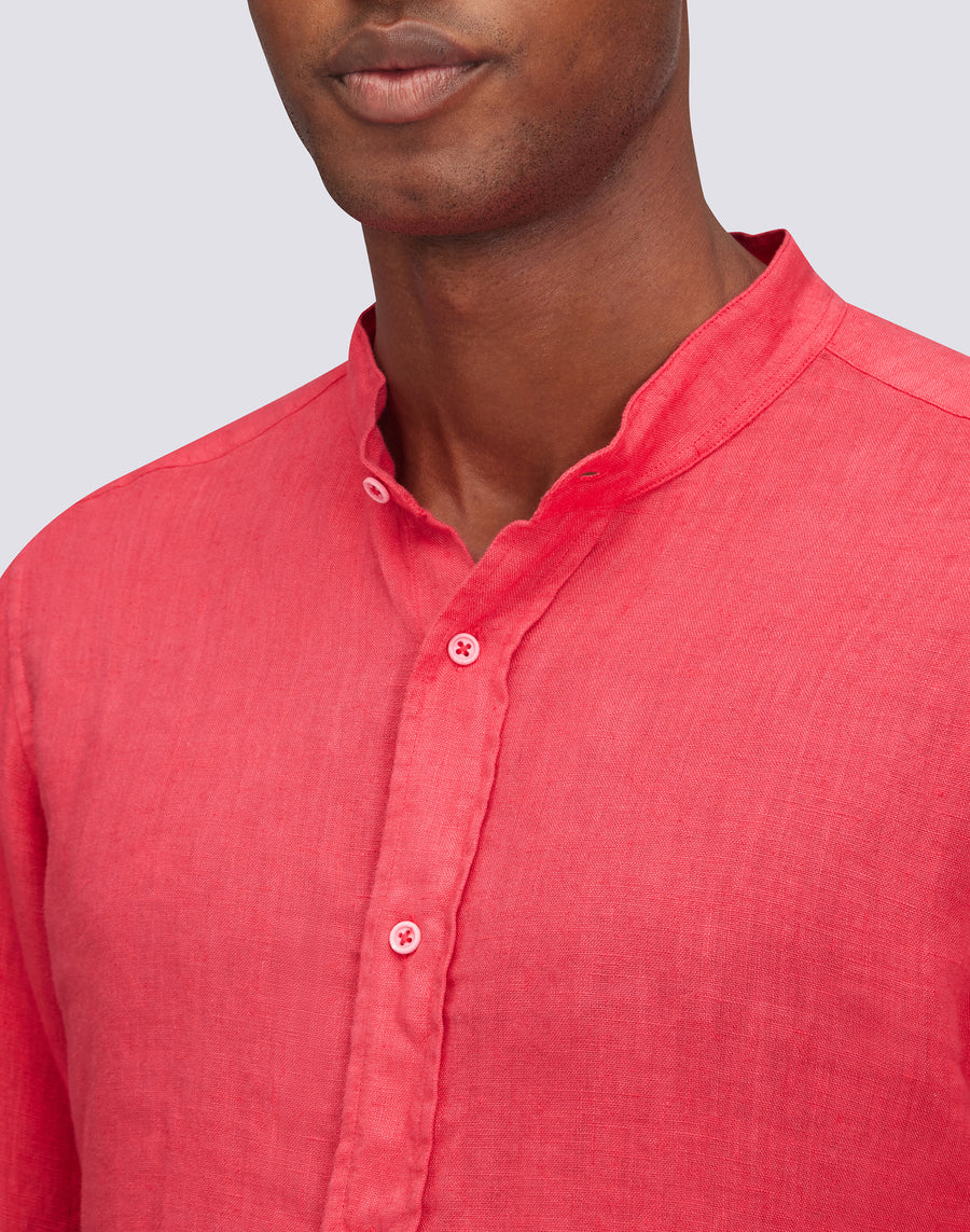CHEMISE EN LIN TEINT EN PIÈCE AVEC COL MAO