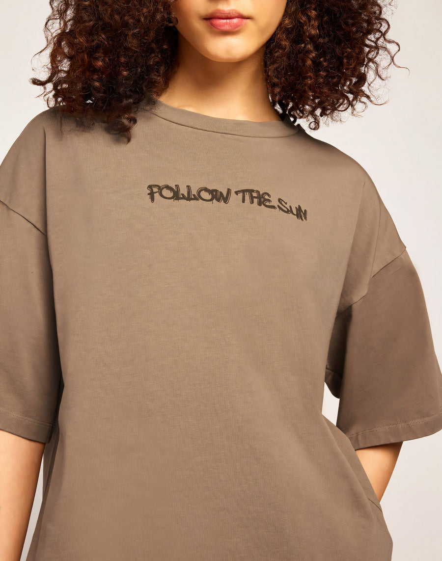 T-shirt oversize pour femme à porter comme base pour tous vos looks décontractés et de loisirs. Ce t-shirt maxi pour femme, doux et confortable, deviendra immédiatement un joker dans votre garde-robe pour les tenues décontractées : parfait pour les voyages, les loisirs et toutes les occasions informelles.