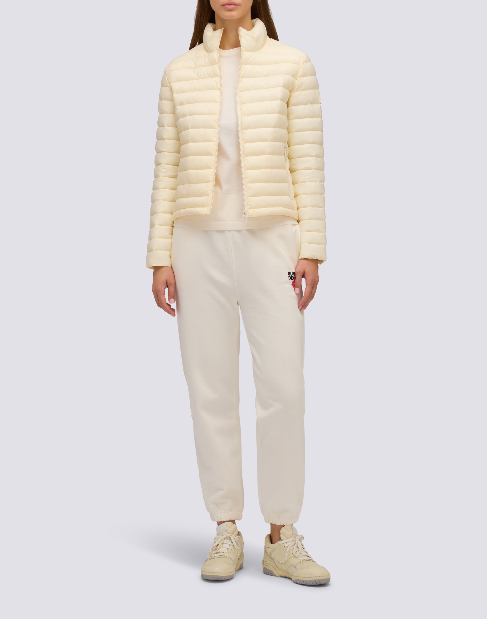 Doudoune courte pour femme à col montant en nylon mat ultra-léger, matelassée de canaux horizontaux. Le rembourrage est réalisé en Repreve, une fibre synthétique innovante, qui offre une protection légère contre le froid. La veste est complétée par une veste en nylon avec logo imprimé et cordon de serrage réglable. Coupe standard et chaleur moyenne.