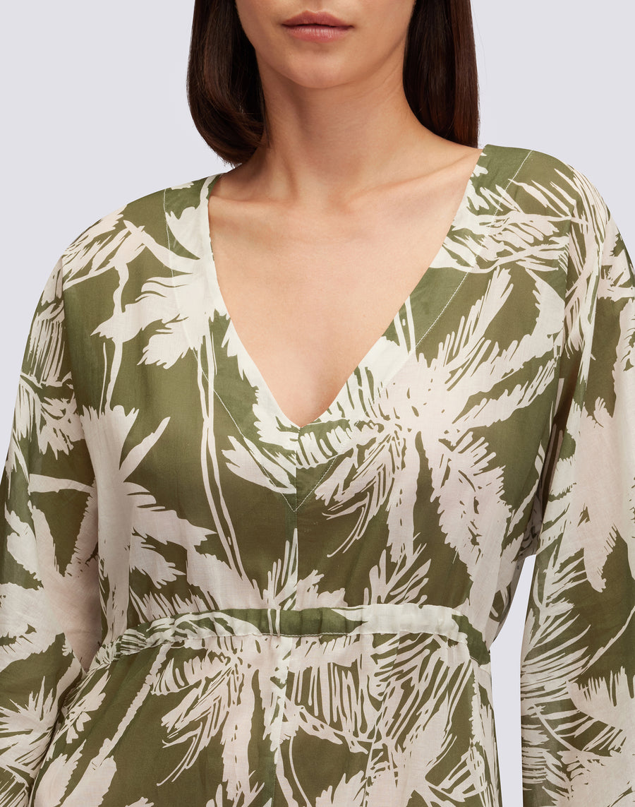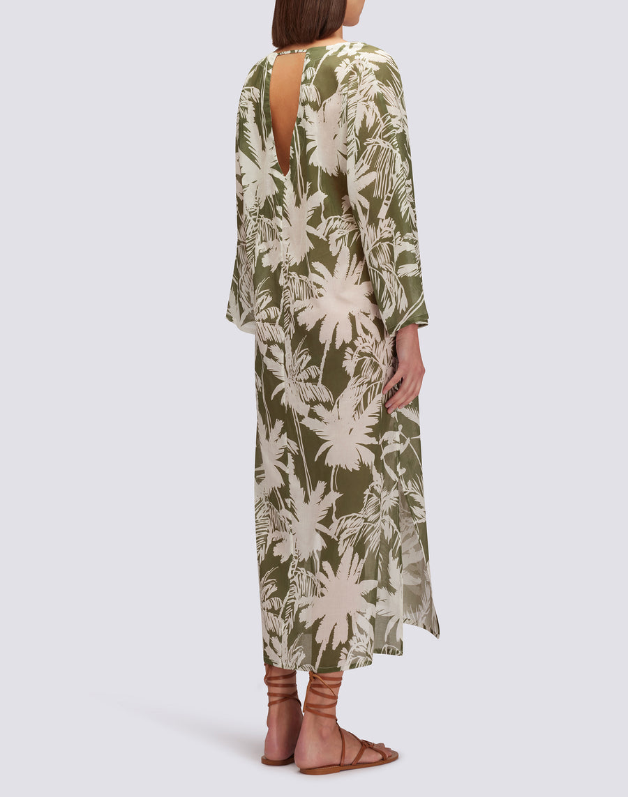 ROBE LONGUE EN VOILE DE COTON AVEC IMPRIMÉ SAVANE TROPICALE