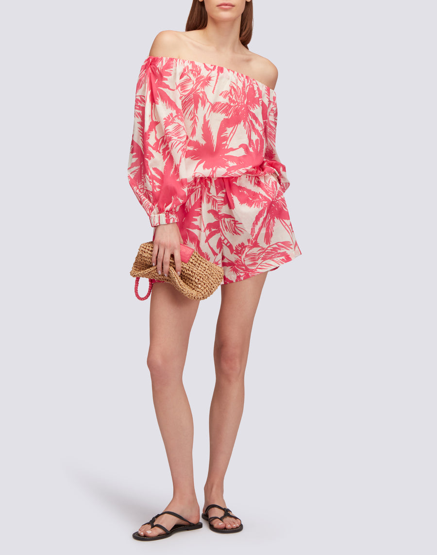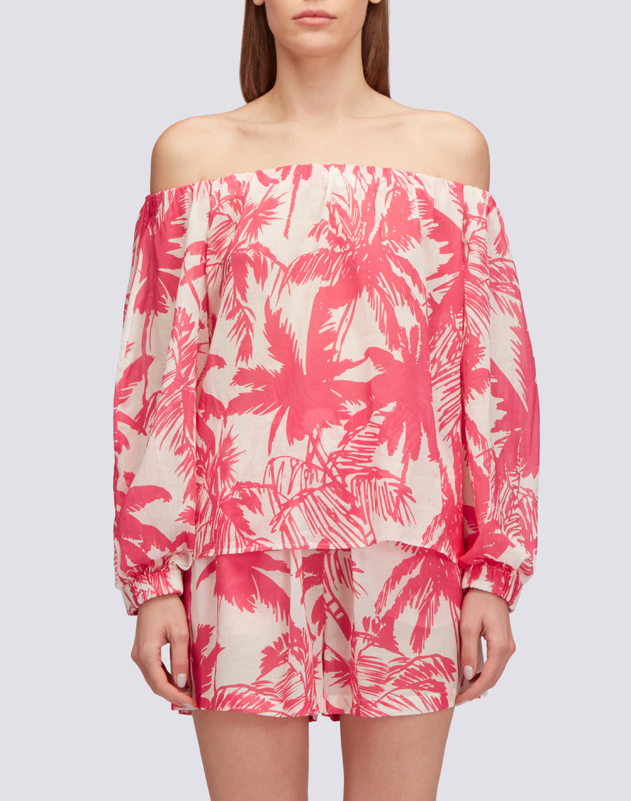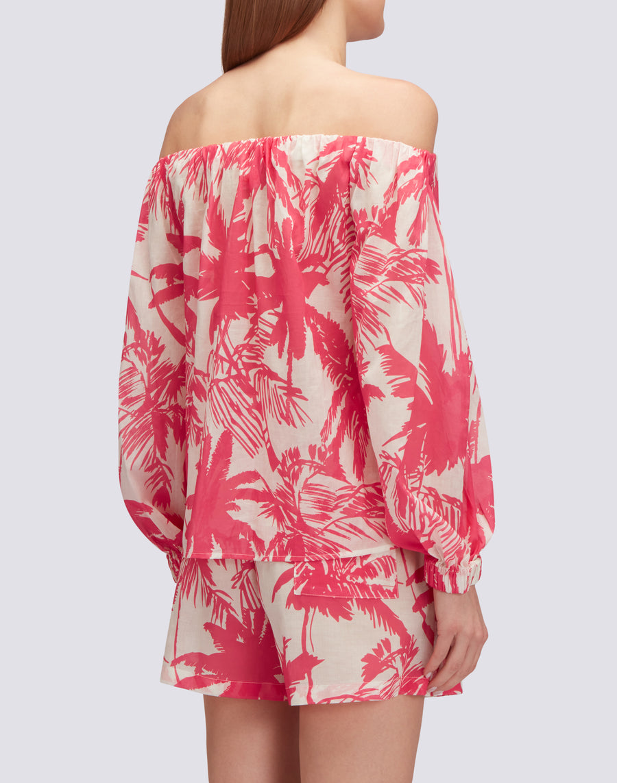 BLOUSE EN VOILE DE COTON AVEC IMPRIMÉ SAVANE TROPICALE