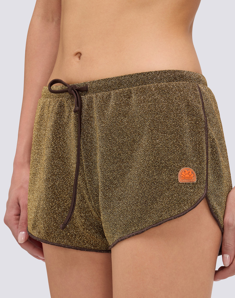 Short de plage pour femme en lurex, court et léger, facile à combiner avec votre maillot de bain préféré pour que chaque journée de plage soit parfaite.