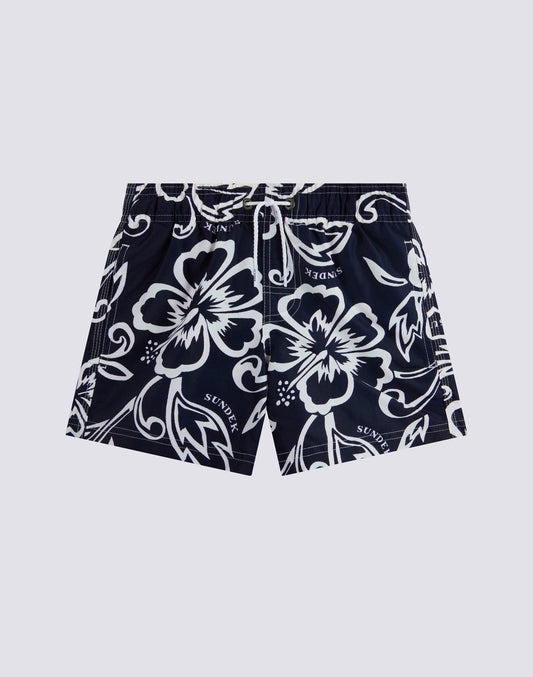 COSTUME DA BAGNO CORTO BAMBINO CON VITA ELASTICATA STAMPA ARCHIVE HIBISCUS SK23