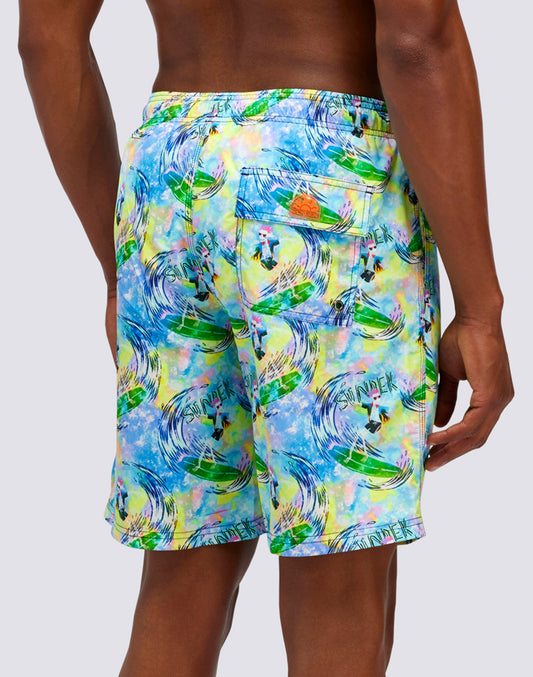 COSTUME DA BAGNO LUNGO VITA ELASTICATA STAMPA FLY&DYE