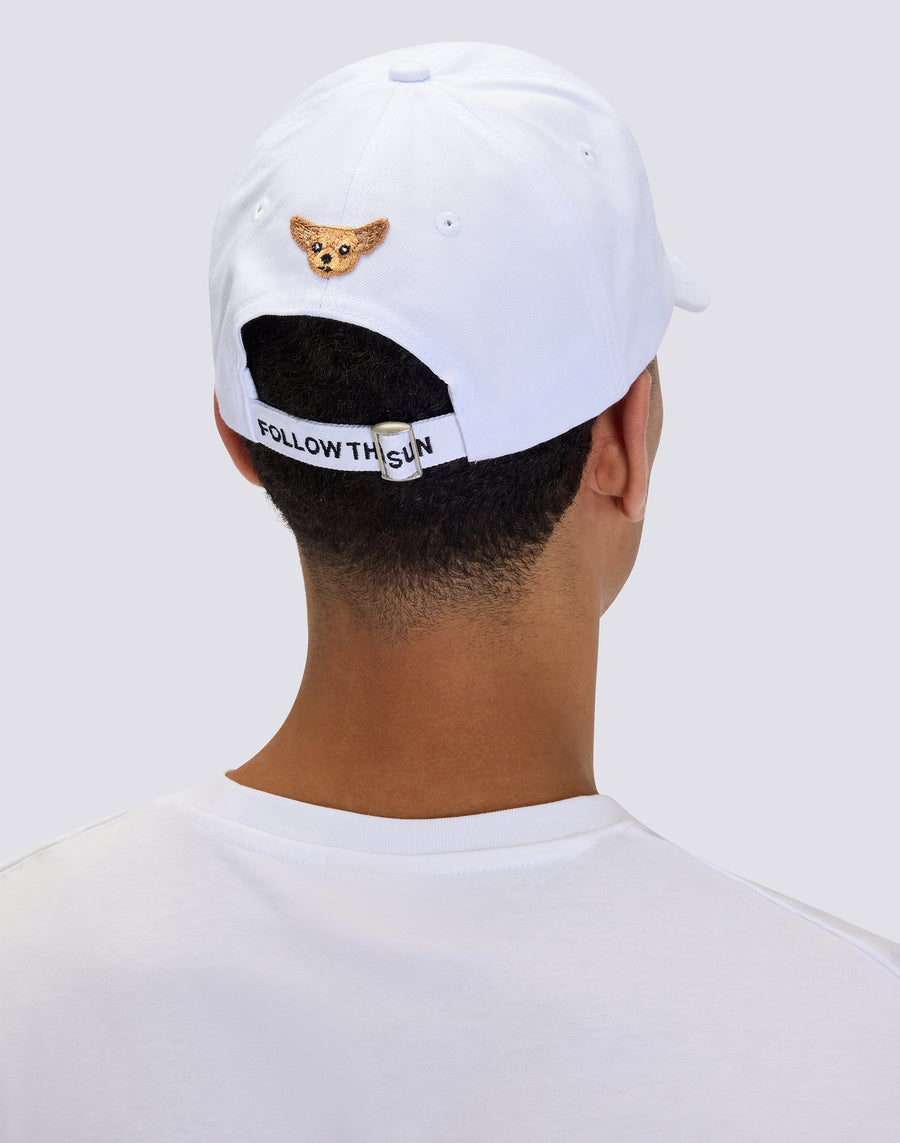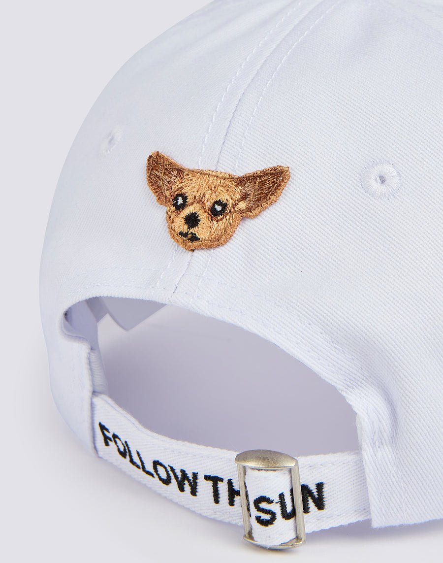 Cappello stile baseball capsule Sundek & Pelo Foundation con patch del chihuahua.