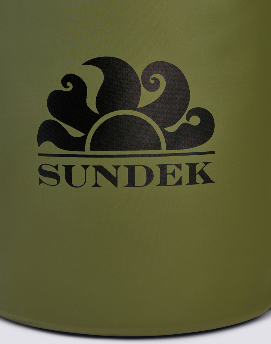 Zaino tecnico water resistant da 20 litri con logo Sundek sul fronte, spallacci regolabili e moschettone. Ideale per escursioni o brevi viaggi.