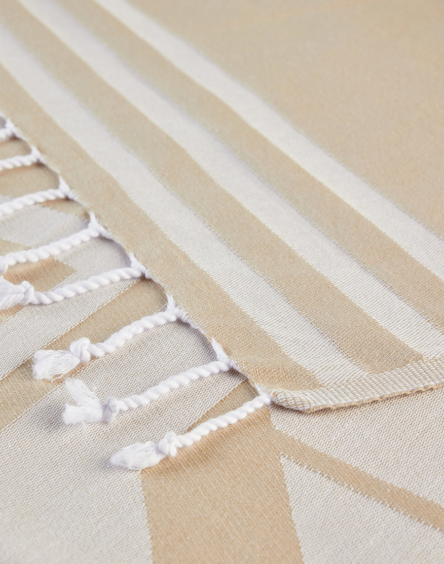 Telo mare fouta jacquard con maxi logo a contrasto con righe verticali e fondi con frange intrecciate. Lunghezza: 100x170 cm. Peso: 320 gr.