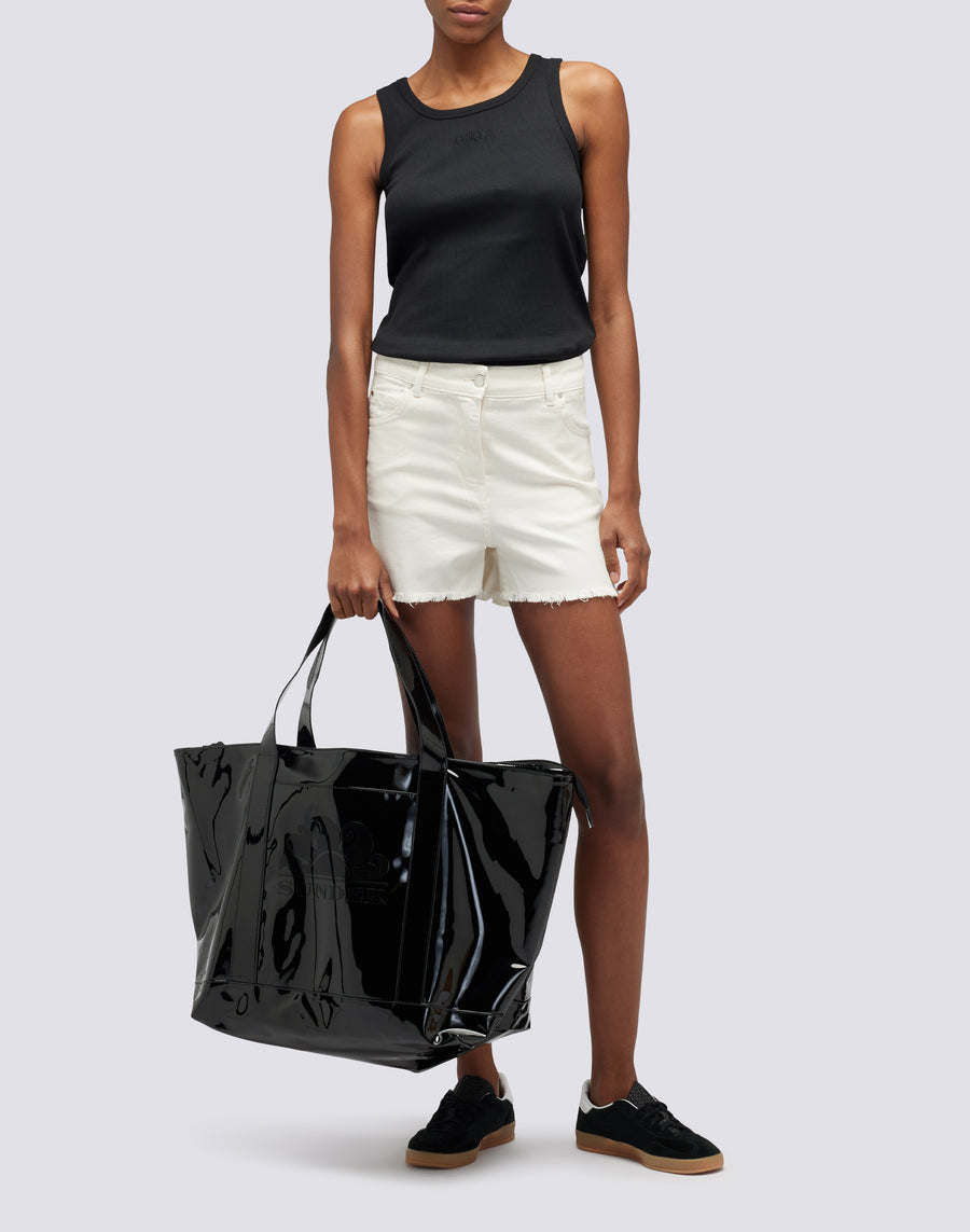 Se cerchi una borsa mare capiente e allo stesso tempo chic opta per la nuova Tiffany, rifinita lucida, maxi, con i manici. Perfetta per accompagnarti al mare, per una passeggiata o un aperitivo.
