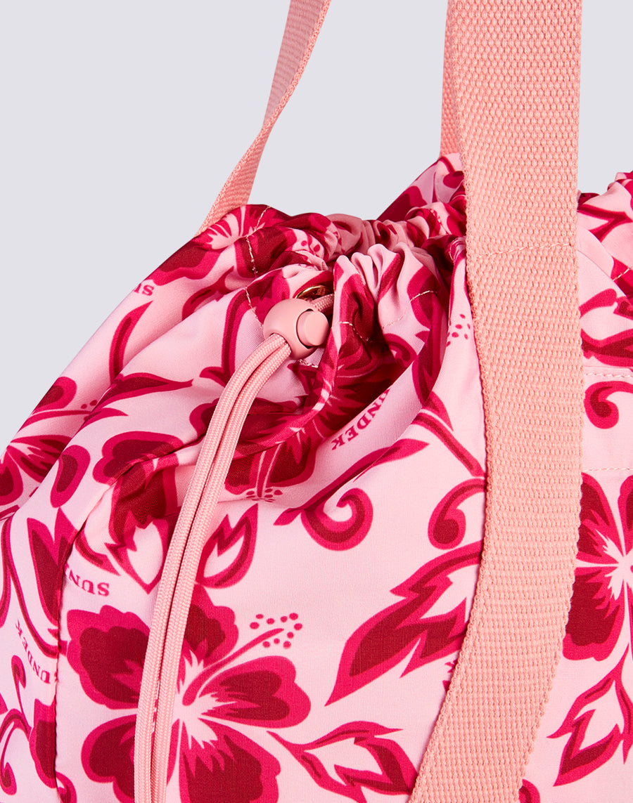 AVA - BORSA IN NYLON CON MANICI E STRINGHE STAMPA HIBISCUS SK23