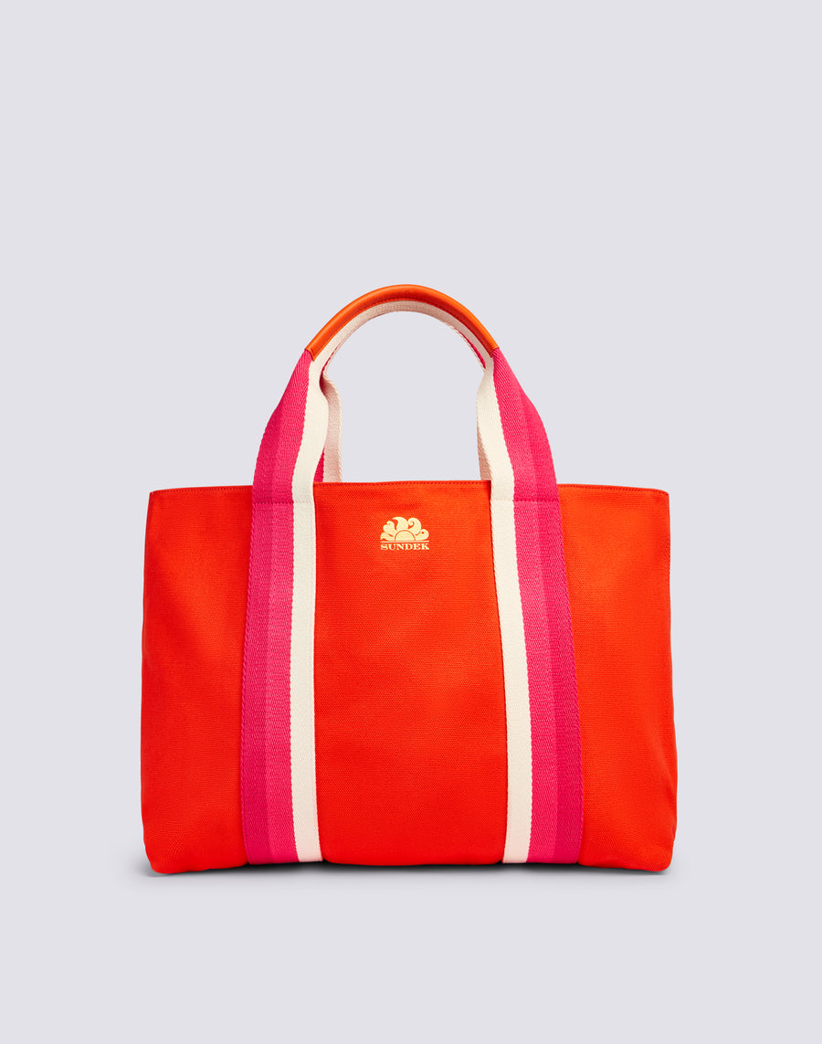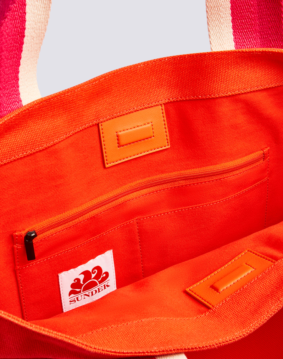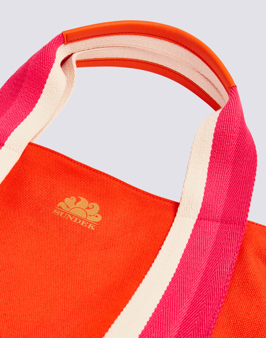 Vivace shopping bag con dettagli arcobaleno a contrasto. Usala per i tuoi momenti di shopping o anche come borsa mare.