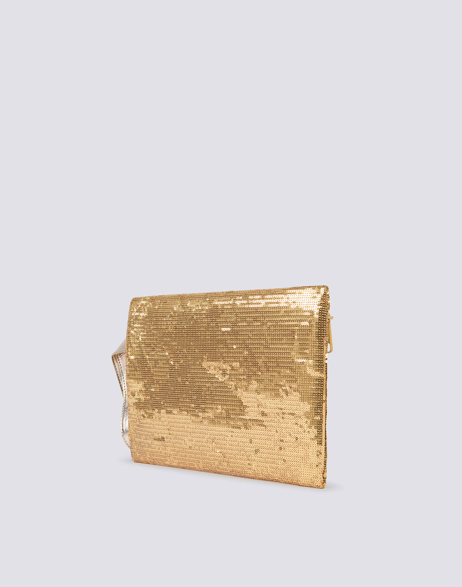 Raffinata pochette in paillettes per avere sempre con te il necessario.