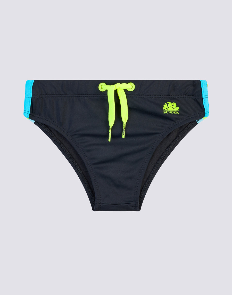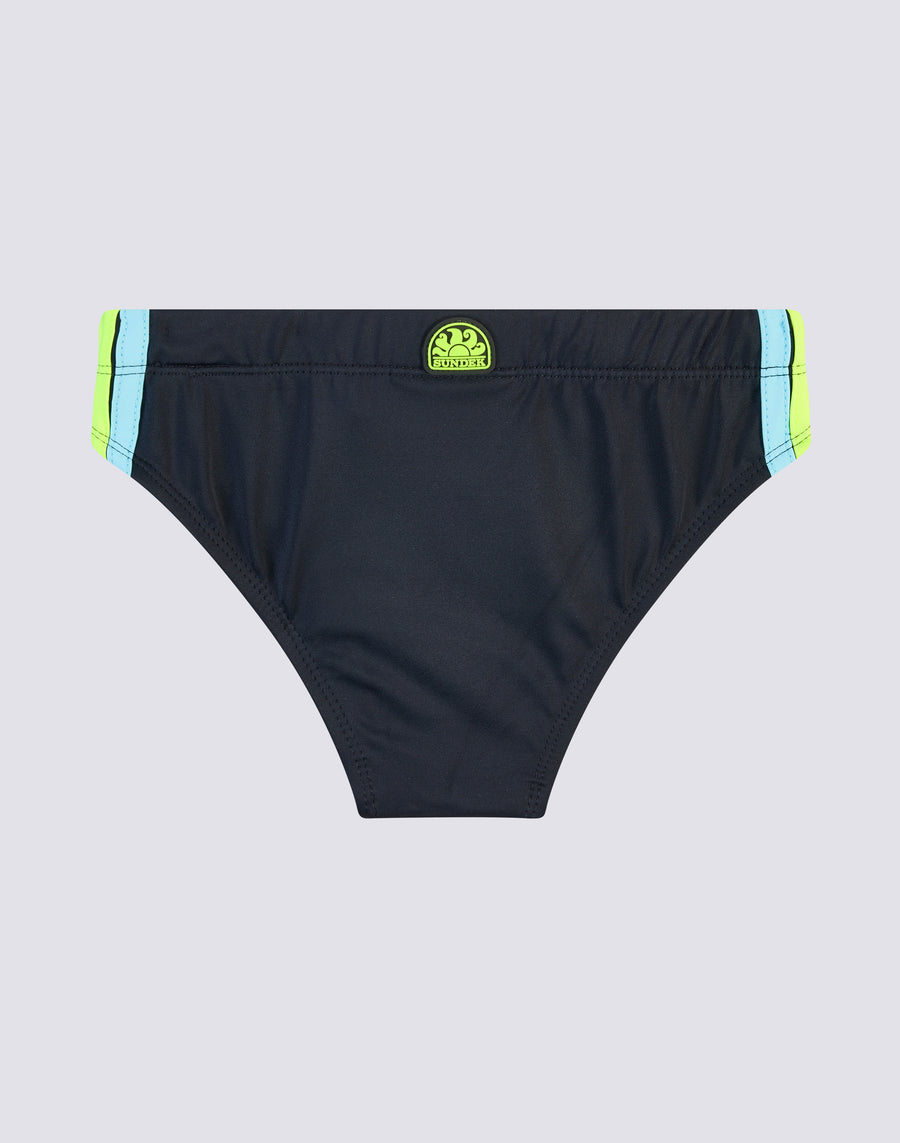 Immergiti nei colori dell'arcobaleno. Costume mare slip bambino in nylon Econyl rigenerato.