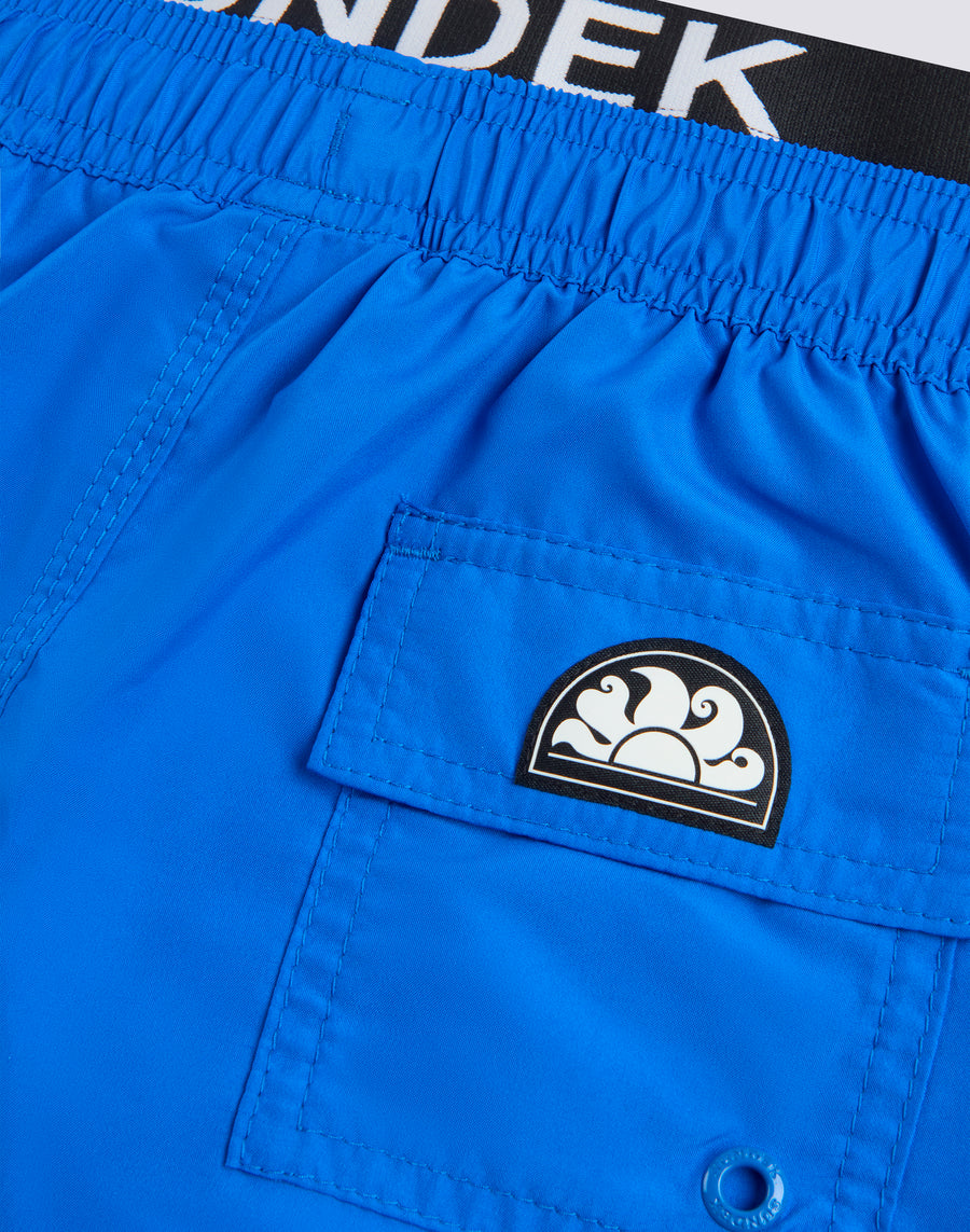 Un modello che accompagnerà il tuo bimbo nelle sue mille attività in vacanza, perfetto per muoversi e giocare in piena libertà. Dotato di elastico logo brandizzato, tasca posteriore e coulisse per regolare l'aderenza. Il poliestere leggero con cui è realizzato dona freschezza e una rapida asciugatura.