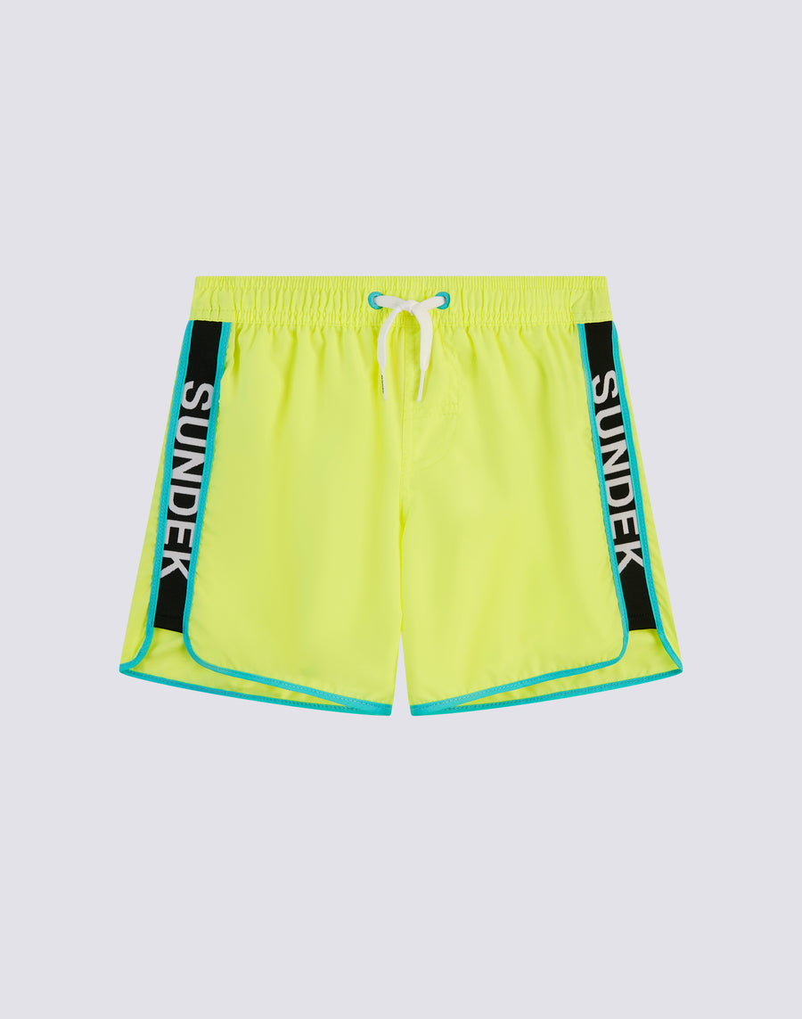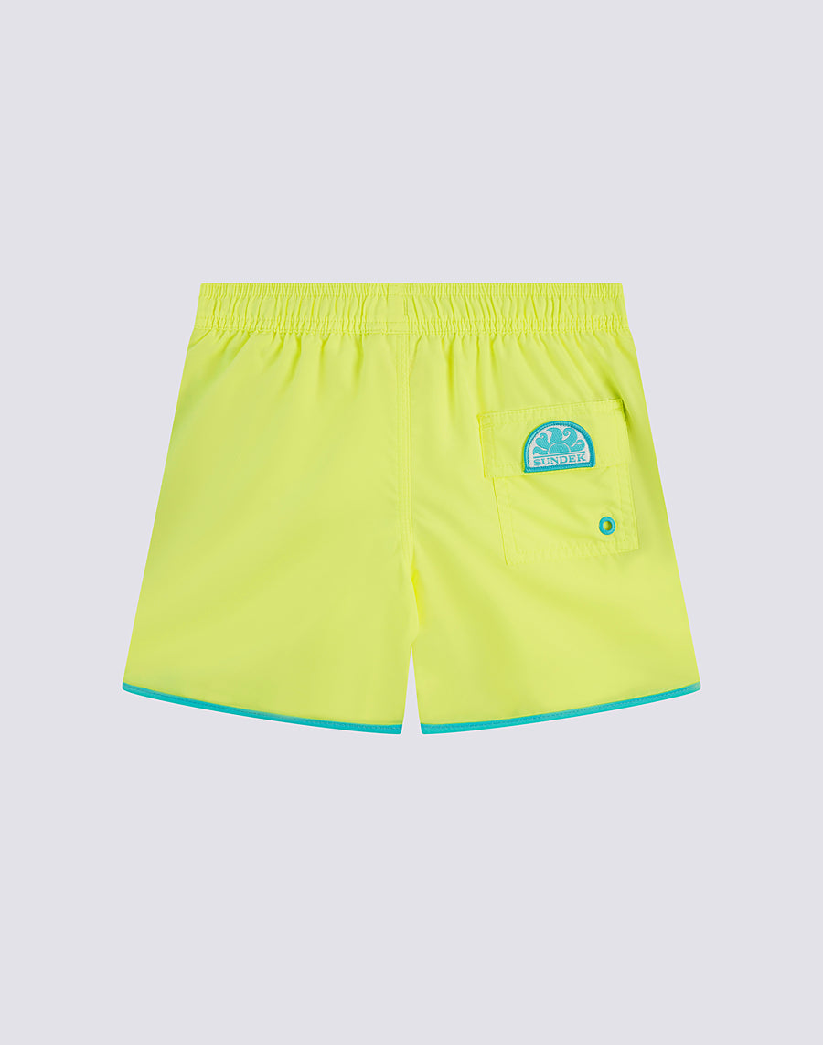 Costume da bagno da bambino con coulisse e vita elasticata, in tessuto Poliestere leggero. Dotato di spacchetti laterali arrotondati con profili a contrasto. Lunghezza esterno coscia 11.25"/28,5 CM (TAGLIA 6 anni).