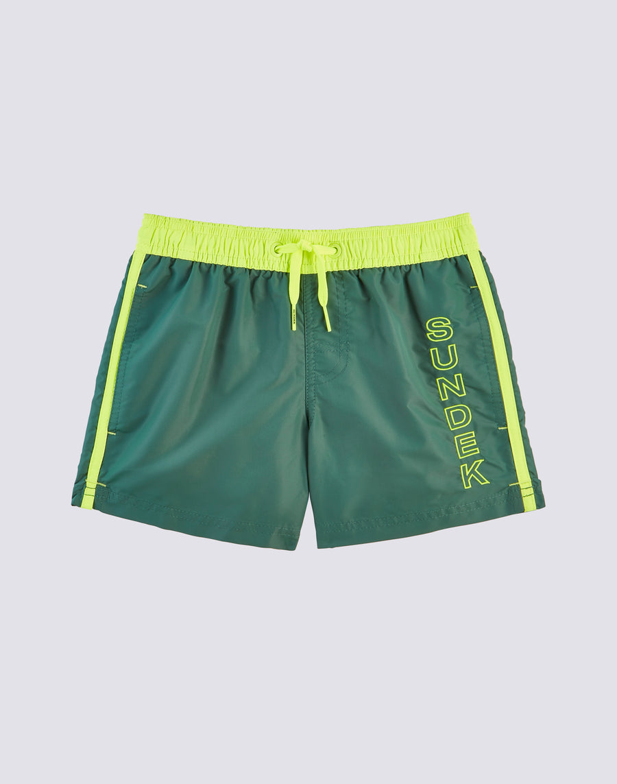 Questo costume da bagno iconico in nylon taffetà è perfetto per il tuo bambino. Con il logo Sundek, i ricami e un bordo a contrasto, questo costume vanta una vita elasticata per un comfort ottimale. Inoltre, grazie al suo tessuto quick dry, il tuo bambino si asciugherà rapidamente dopo ogni nuotata.