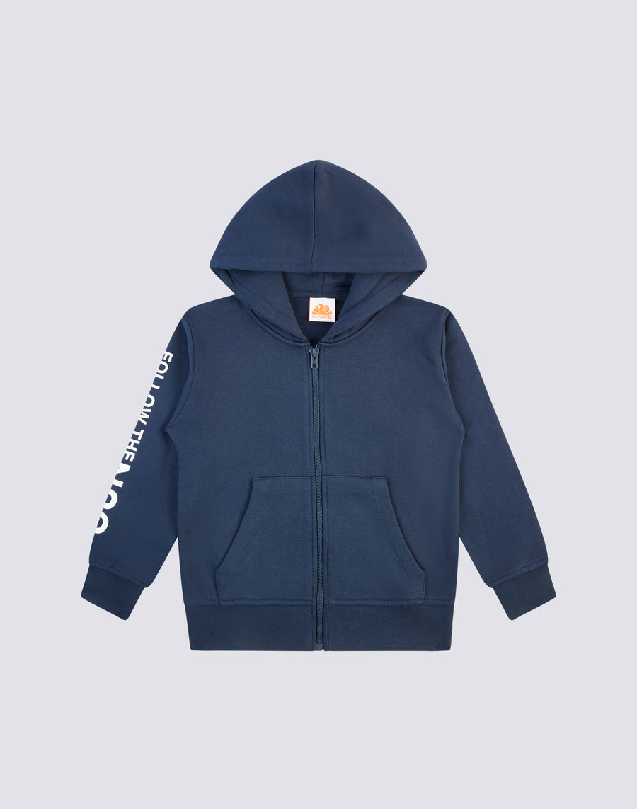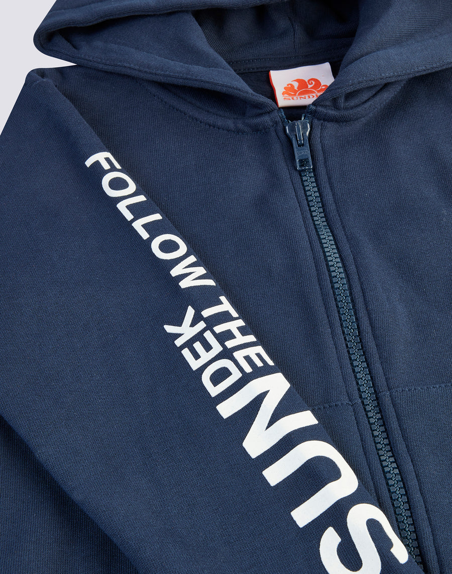 FELPA DA BAMBINO CON CAPPUCCIO E SCRITTA SULLA MANICA