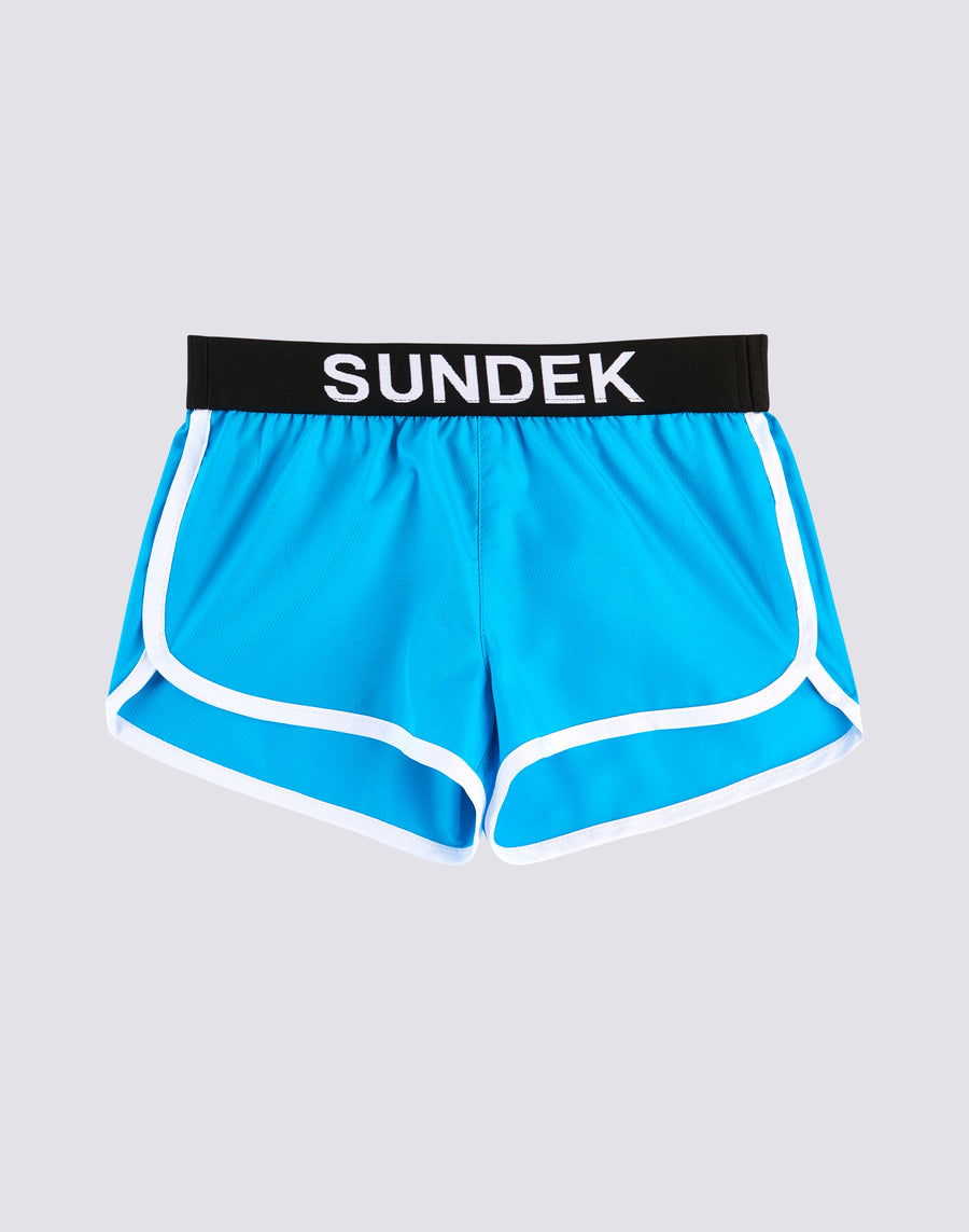 Uno shorts leggero con logo Sundek perfetto da indossare sopra il costume. Facili da infilare, dal tessuto leggero e confortevole, accompagneranno la tua bimba dalla spiaggia ai giochi estivi. Vestibilità regular. Lunghezza 16 cm (taglia 6) misurati sul lato esterno.
