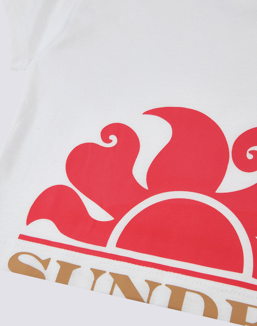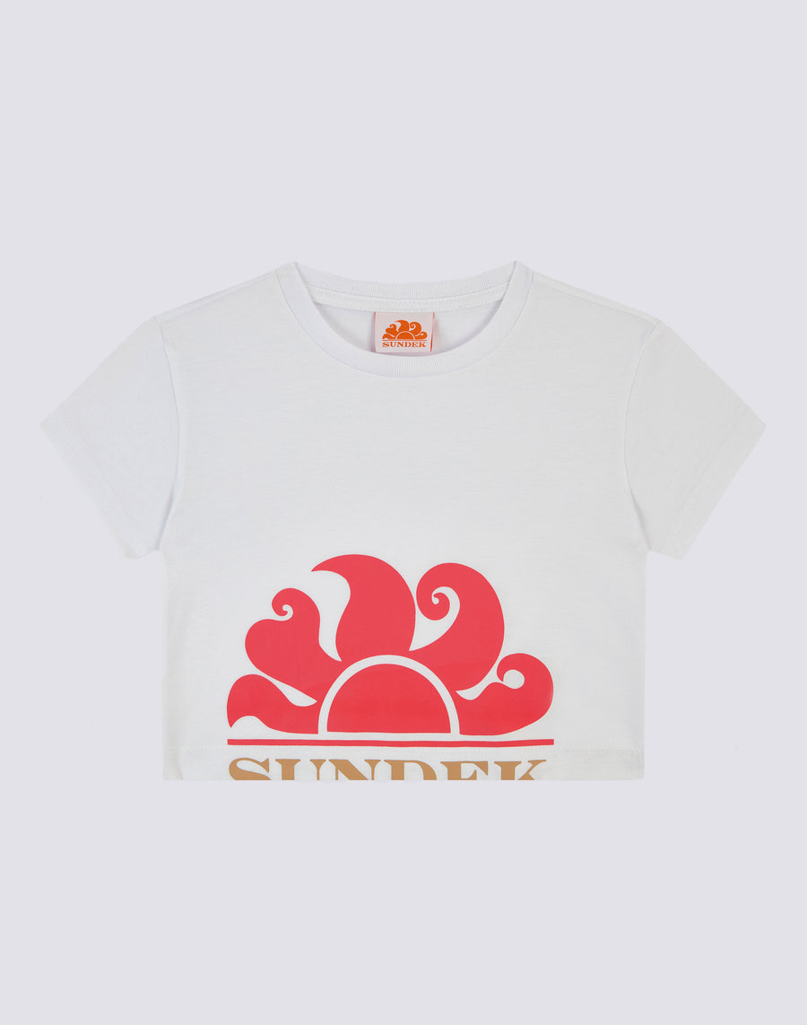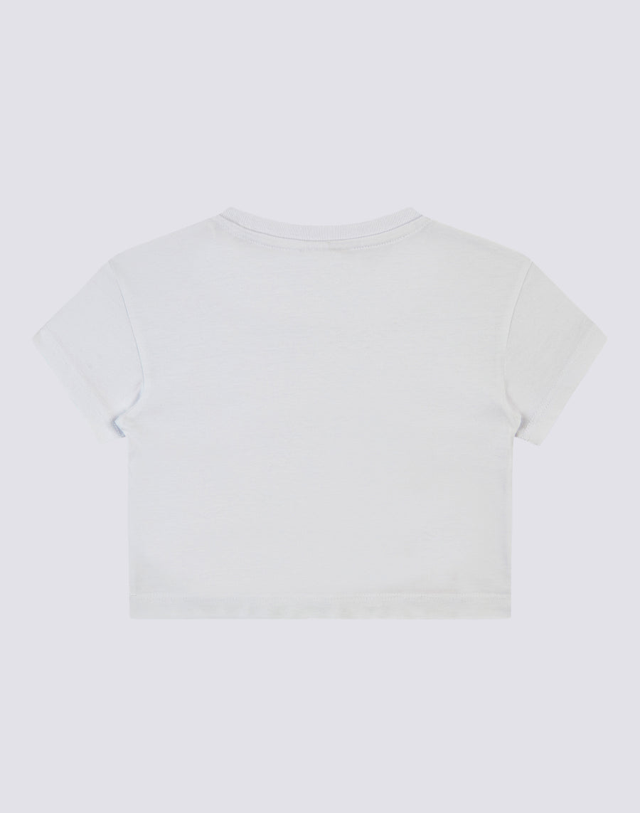 T-shirt bambina crop da indossare sopra jeans o gonne. Modello immancabile per il guardaroba della tua bambina.