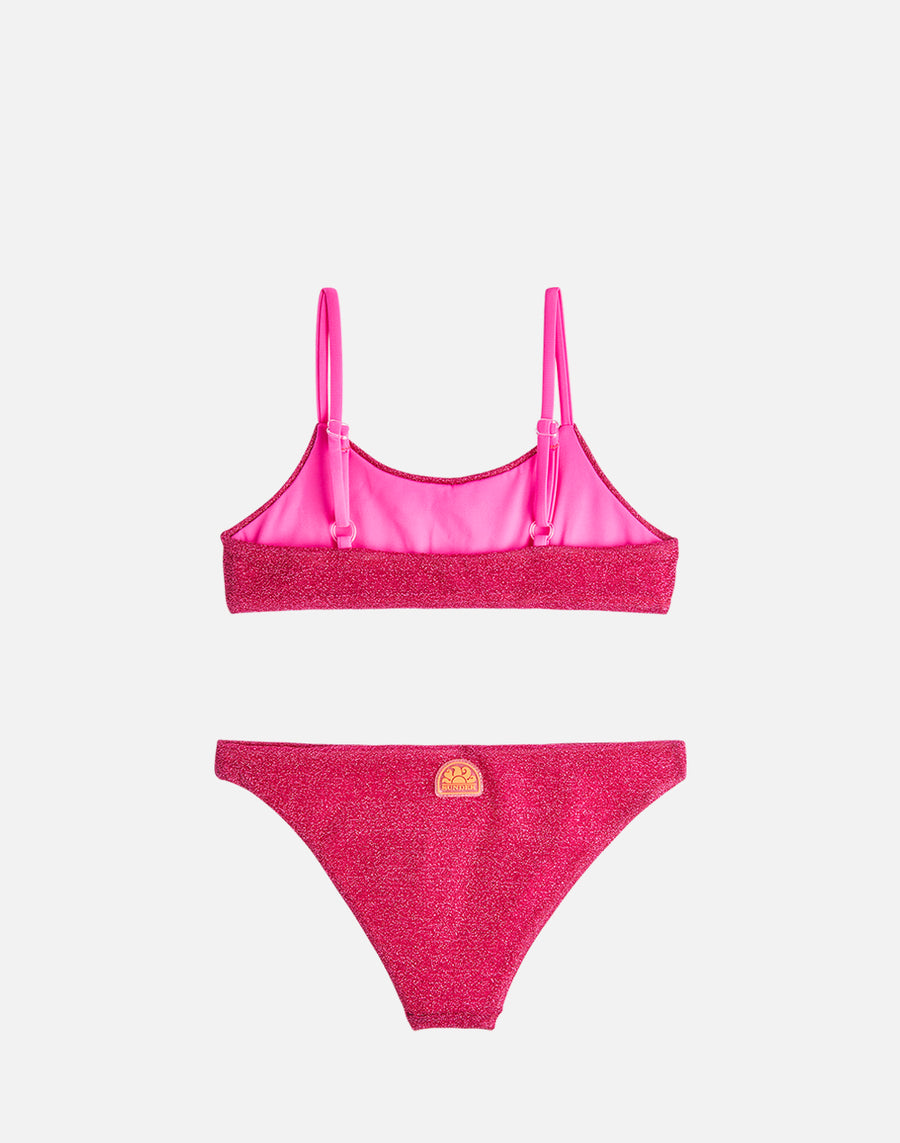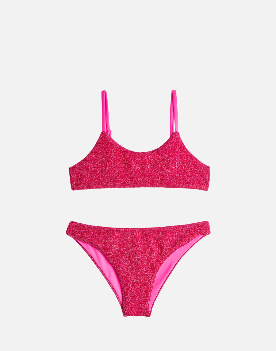Per brillare sotto il sole: scegli il bikini da bambina in lurex, da abbinare al costume della mamma. Le giovanissime non potranno farsi sfuggire questo coordinato beachwear con top a fascia e slip in lurex luminoso e confortevole. Da abbinare al vestito mare in coordinato.