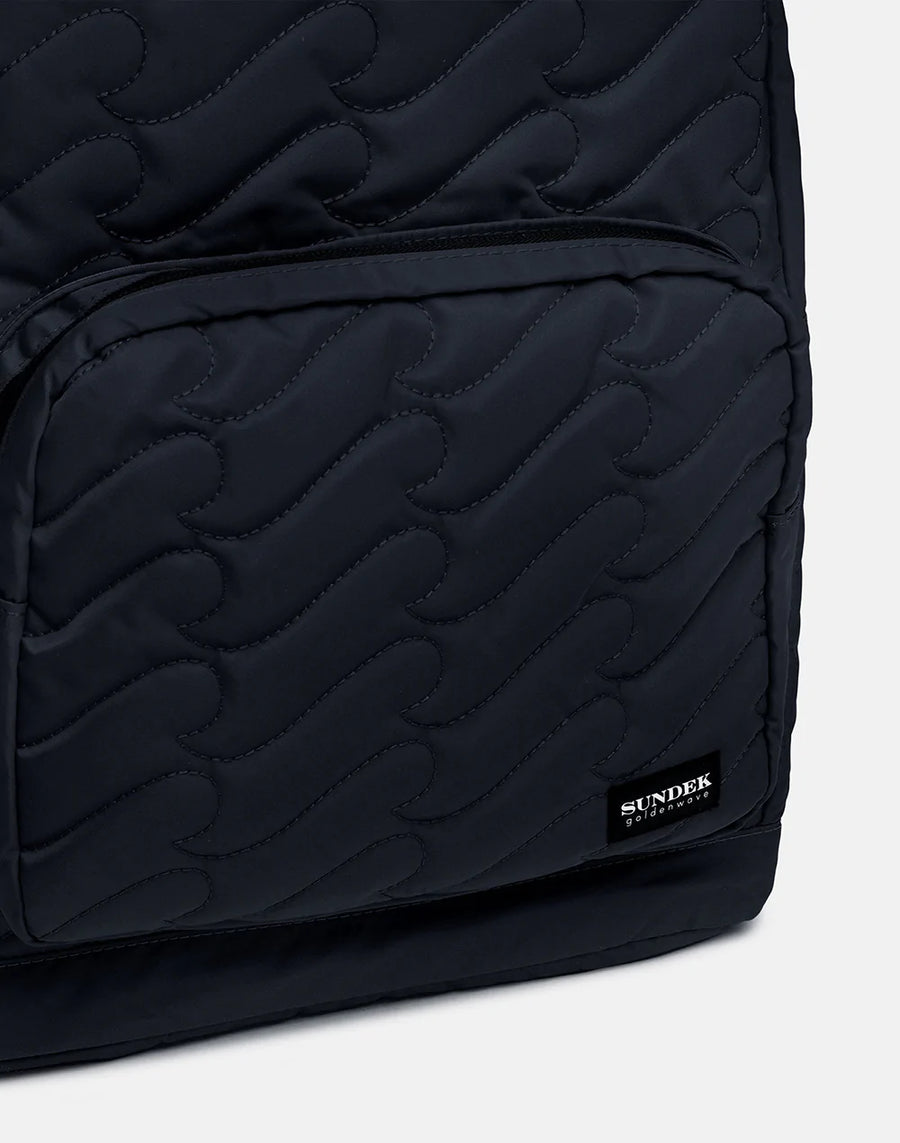 Zaino imbottito con la caratteristica impuntura ad onde e tasca interna per il laptop.
