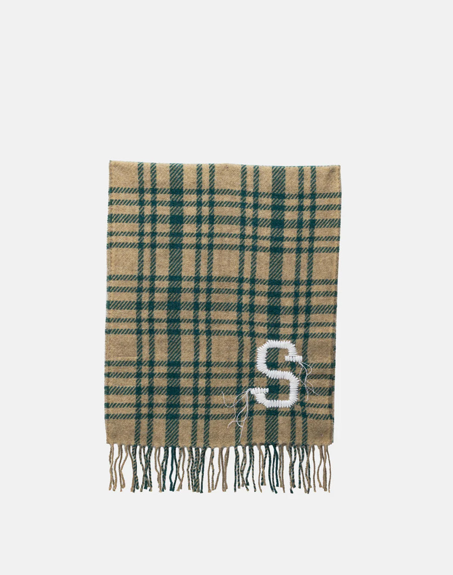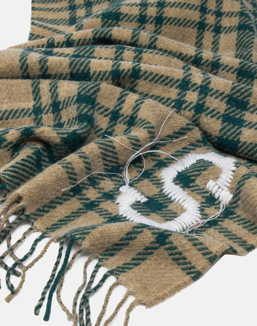 Sciarpa in feltro a quadri con ricamo artigianale in lana.